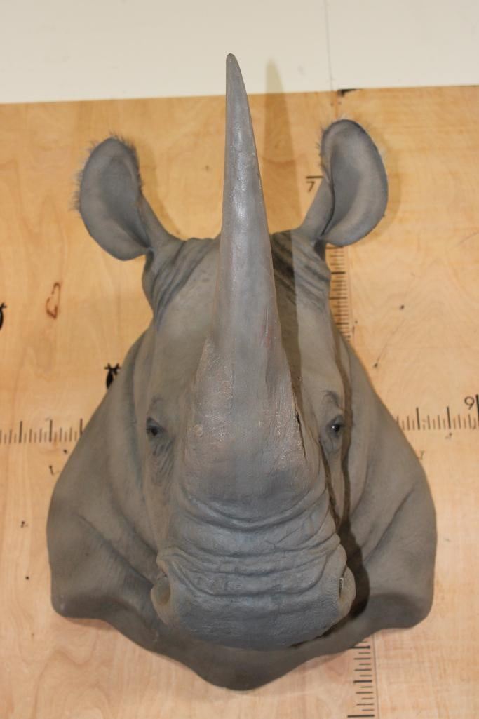 Incredibly Nice Full Reproduction WHITE RHINOCEROS Shoulder Mount. It is Lightweight and very realistic. It measures 44" Tall x 37" Wide x 64" Depth (from the wall). It is in Very Good Condition. TAXIDERMY