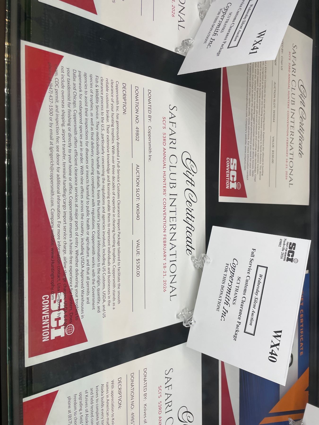 Coppersmith Inc. has generously donated a Full-Service Customs Clearance Import Package tailored to facilitate the smooth clearance of your hunting trophies.