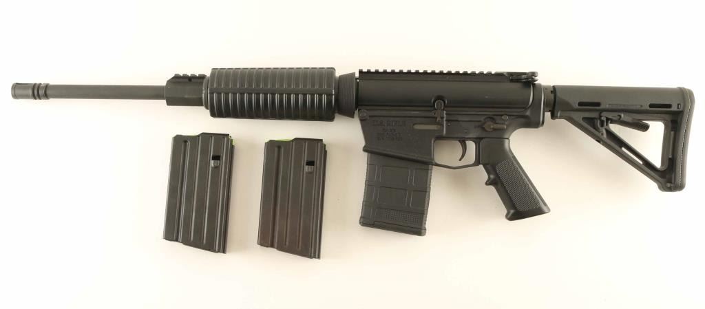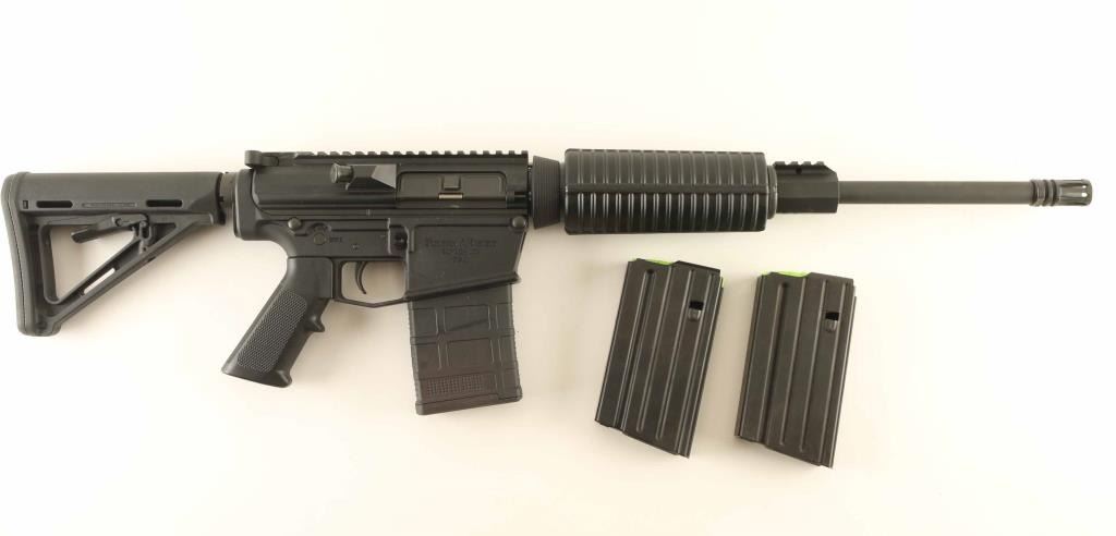 Semiautomatic rifle features parkerized finish, black polymer furniture, MAGPUL MOE collapsing stock, 20" barrel, Picatinny rail gas block & receiver top, no sights included, flash hider, forward assist, spring loaded ejection port cover, manual safety, pistol grip, takes detachable magazines. Bore is excellent condition. Overall external appearance is almost like new with few signs of handling or use. Includes a total of (3) magazines (20 round capacity). Condition is NRA Excellent *** Modern Firearm ***
