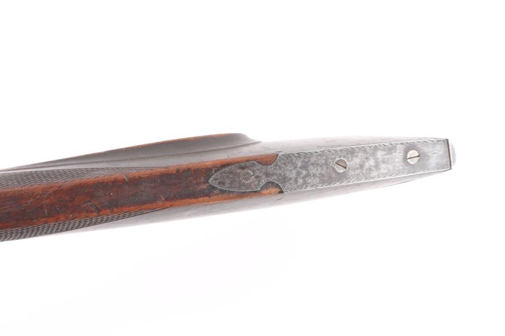 GOOD: Some minor replacement parts; metal smoothly rusted or lightly pitted in places, cleaned or re-blued; principal letters, numerals and design on metal legible; wood refinished, scratched bruised or minor cracks repaired; in good working order.