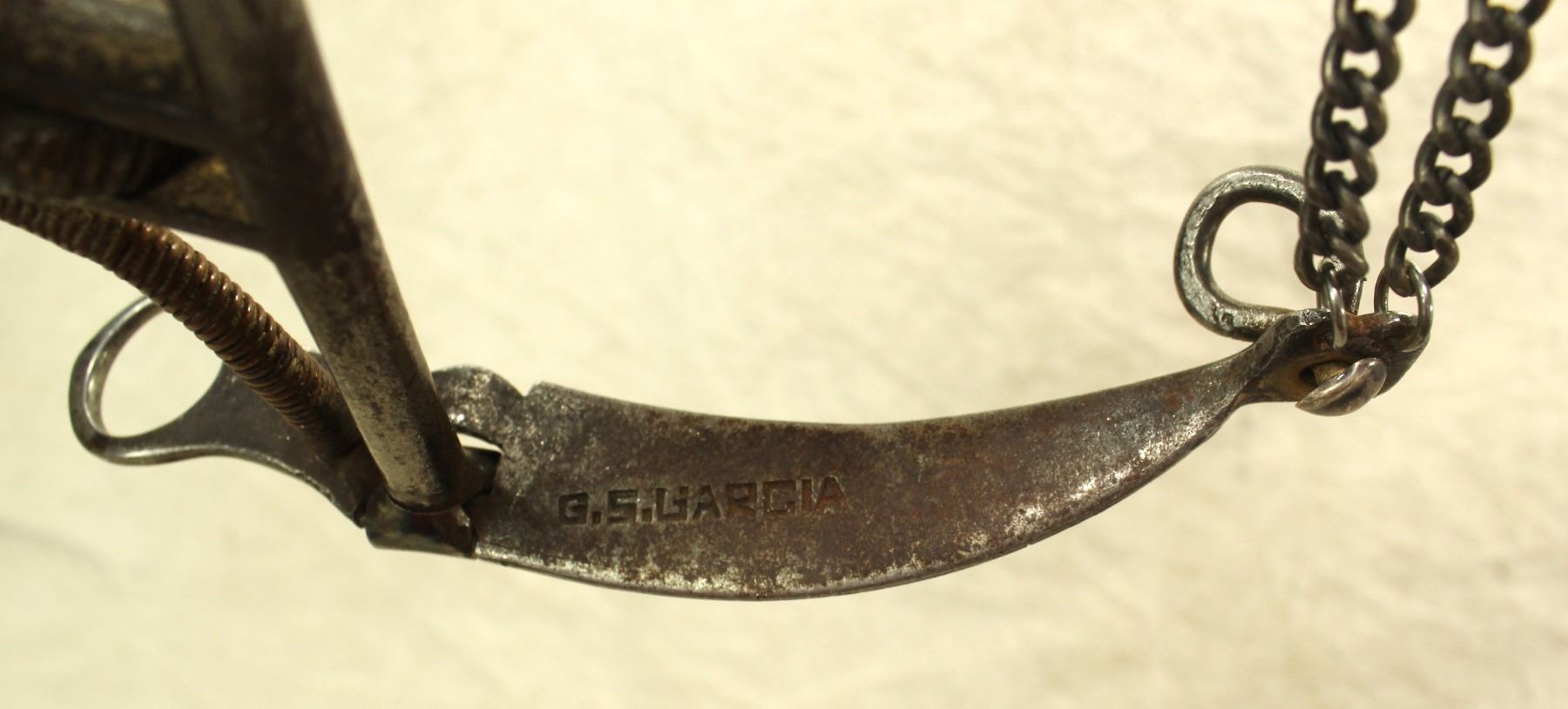Rarely seen loose jaw spade bit with unusual engraved silver mounting, topped off with a desirable backward "N" maker's mark.