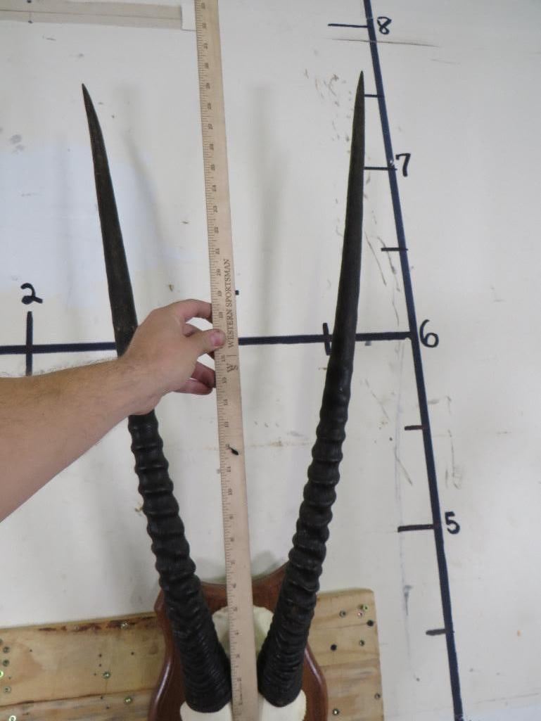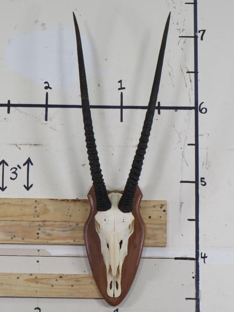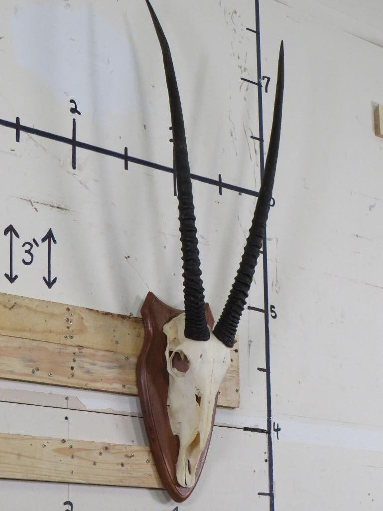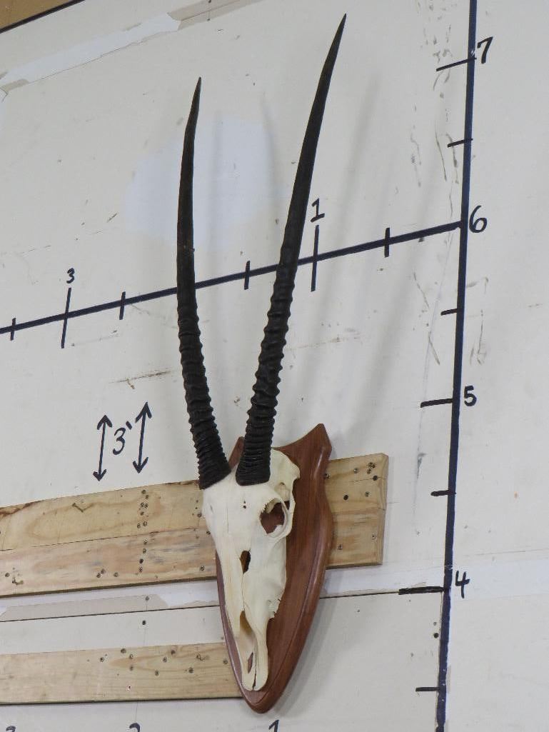 Very Nice GEMSBOK Euro Mount with Removable Horns. The Left Horn measures 32" Long and the Right measures 33" Long. TAXIDERMY