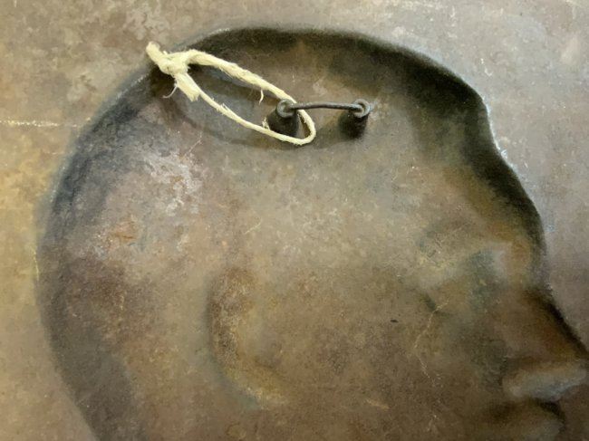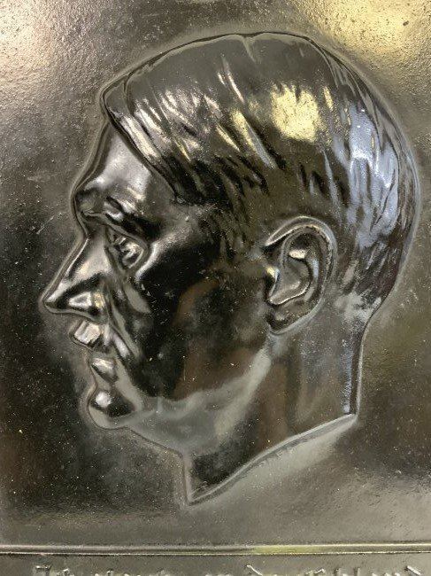 GERMANY THIRD REICH ADOLF HITLER LARGE PLAQUE . CAST METAL . AUTHOR SIGNED W.WOLFF . GES. GESCH. MARKED . HANGING LOOP ON THE BACK. 12.5" X 9.5" HEAVY .