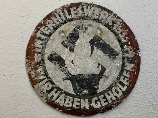 Nazi German Aluminum 1933-34 Winterhilfswerk “We have helped” Door Plate . Citizens who donated to the Winterhilfswerk “Winter Aid Organization” received this plaque to signify that they had made a contribution to the cause. 4" Diameter.