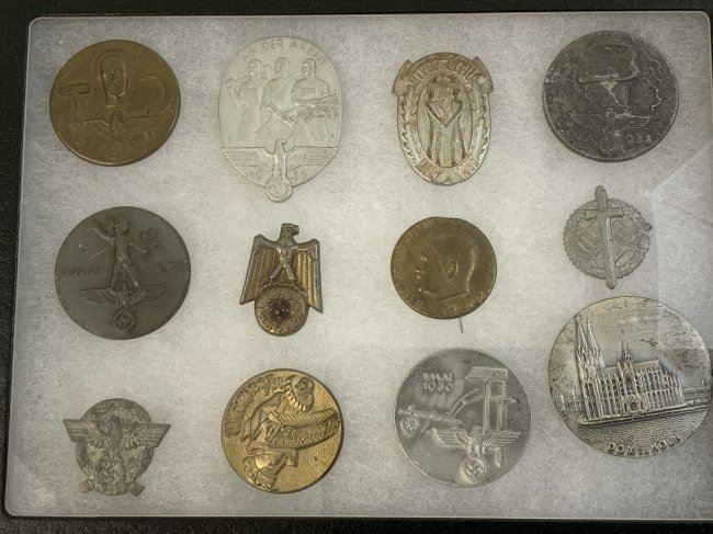GERMANY THIRD REICH CASED LOT OF TINNIES PINS BADGES