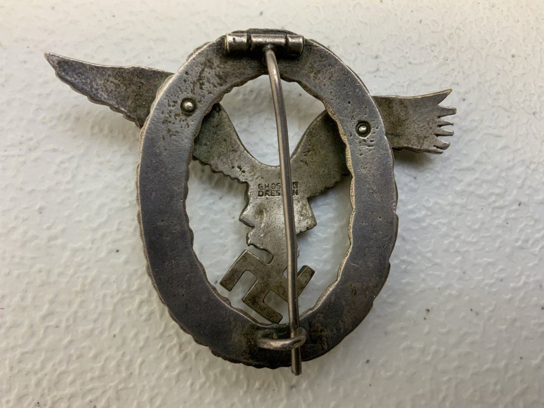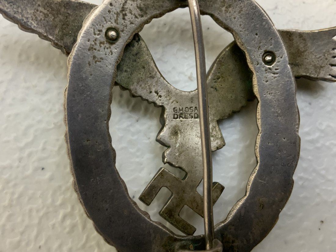 GERMANY THIRD REICH LUFTWAFFE PILOT BADGE MARKED G.H. OSANG DRESDEN. VERY GOOD CONDITION. FINE DETAILS.