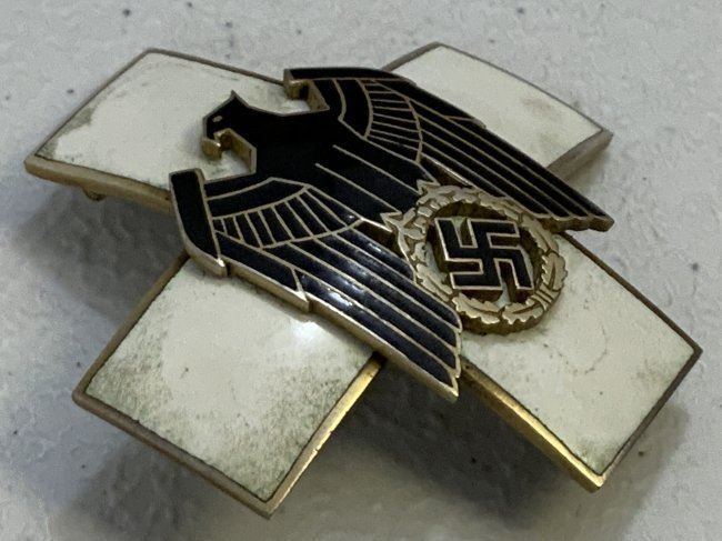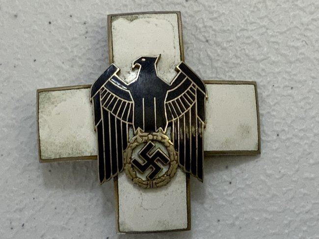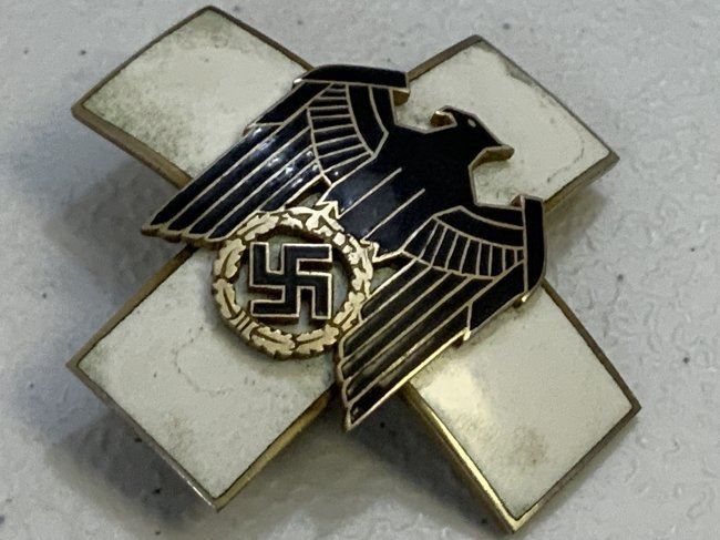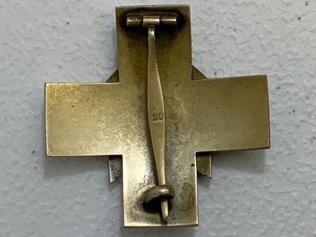 GERMANY THIRD REICH NAZI GERMAN SOCIAL WELFARE DECORATION CROSS . SOME WEAR TO WHITE ENAMEL . MARKED 20 ON THE PIN. HIGH QUALITY HIGHLY VAULTED CROSS .