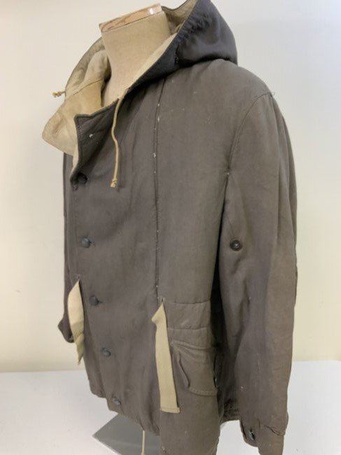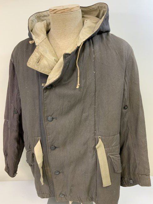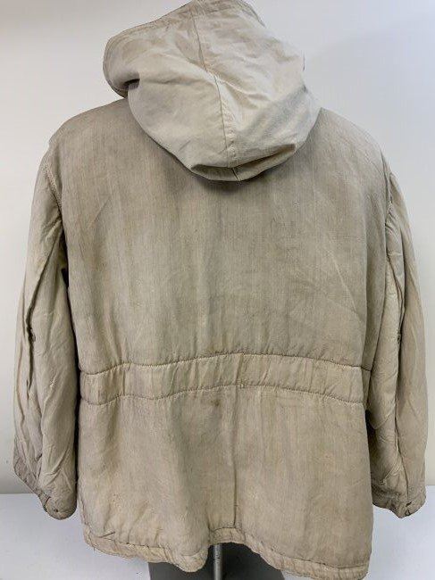 GERMANY THIRD REICH LUFTWAFFE CAMOUFLAGE REVERSIBLE WINTER PADDED PARKA. GOOD AND WELL WORN CONDITION BUT ALL ORIGINAL WITH ALL BUTTONS ON BOTH SIDES INTACT. LARGE SIZE .GREAT EXAMPLE THAT WAS THERE