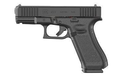 GLOCK, 45V, V Series, Striker Fired, Semi-automatic, Polymer Frame Pistol, Compact, 9MM, 4.02" Barrel, Glock Marksman Barrel, nDLC Finish, Black, No Finger Grooves, Fixed Sights, Front Serrations, Ambidextrous Slide Stop Lever, Flared Mag Well, 17 Rounds, 3 Magazines