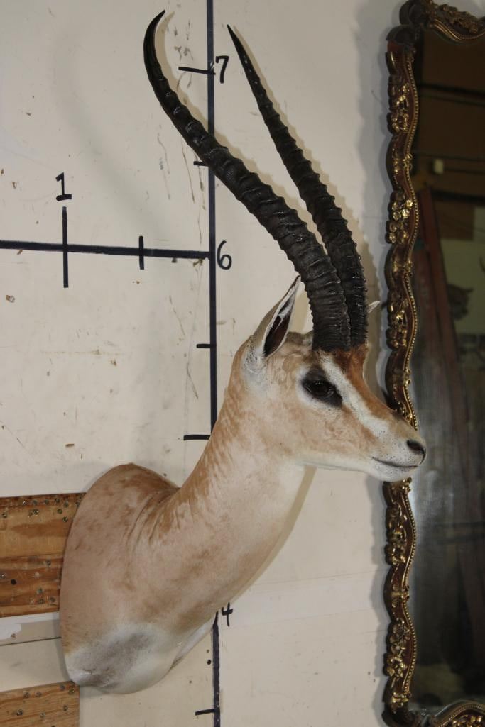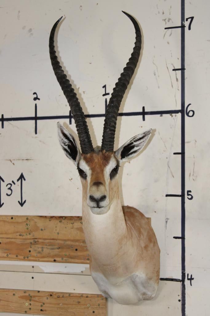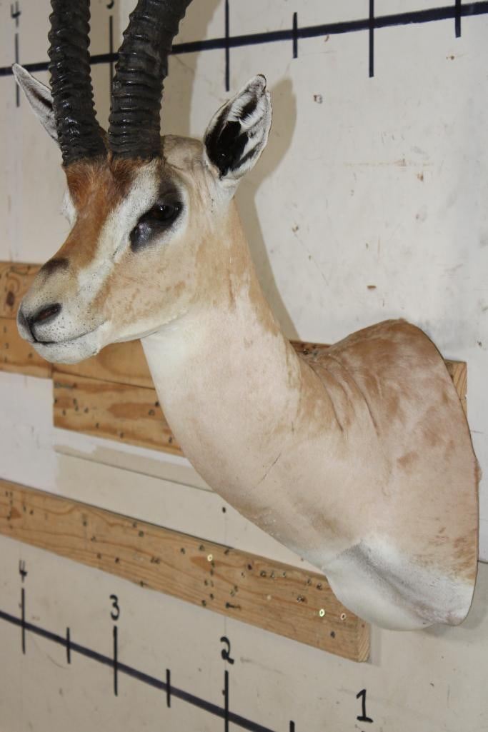 Very Nice, Clean, and Newer GRANT'S GAZELLE Shoulder Mount. The Left Horn measures 24.25" Long and the Right Horn measures 24" Long. It is in Very Good Condition. TAXIDERMY