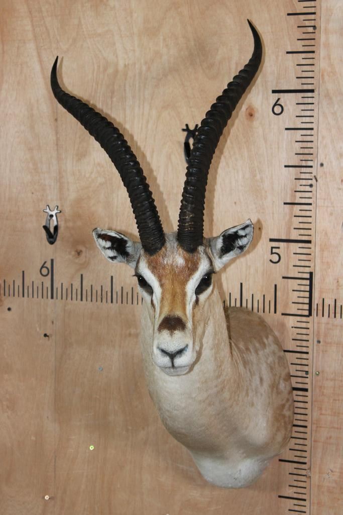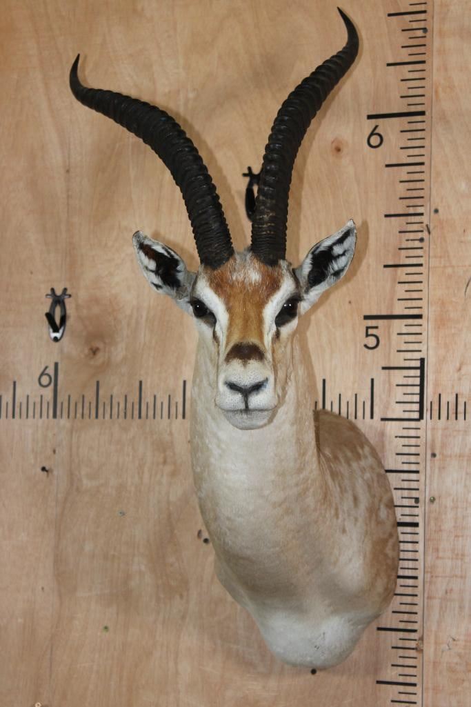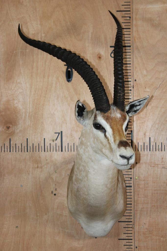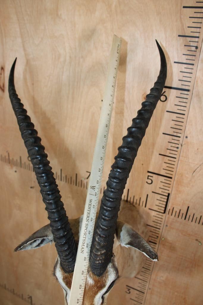 Very Nice GRANT'S GAZELLE Shoulder Mount. The Left Horn measures 24.25" Long and the Right Horn measures 24.5" Long. It is in Very Good Condition. TAXIDERMY