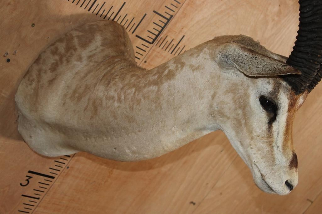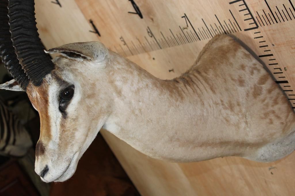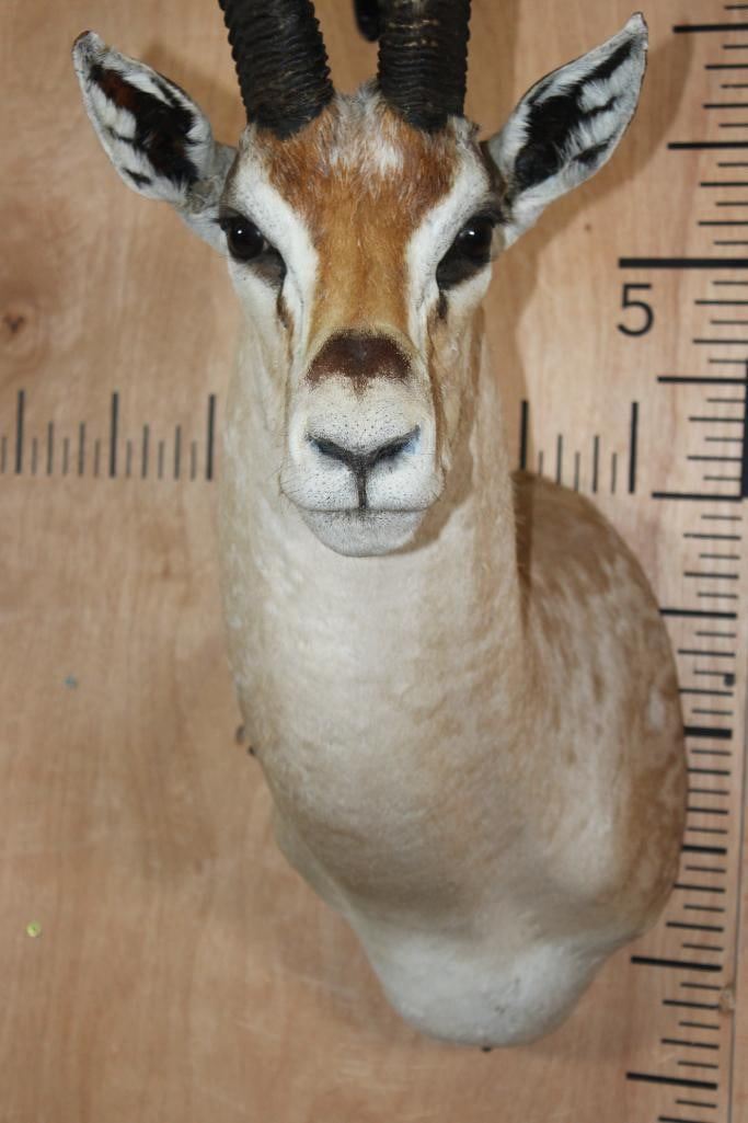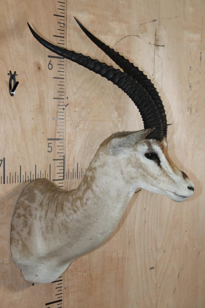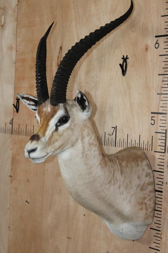 Very Nice GRANT'S GAZELLE Shoulder Mount. The Left Horn measures 24.25" Long and the Right Horn measures 24.5" Long. It is in Very Good Condition. TAXIDERMY