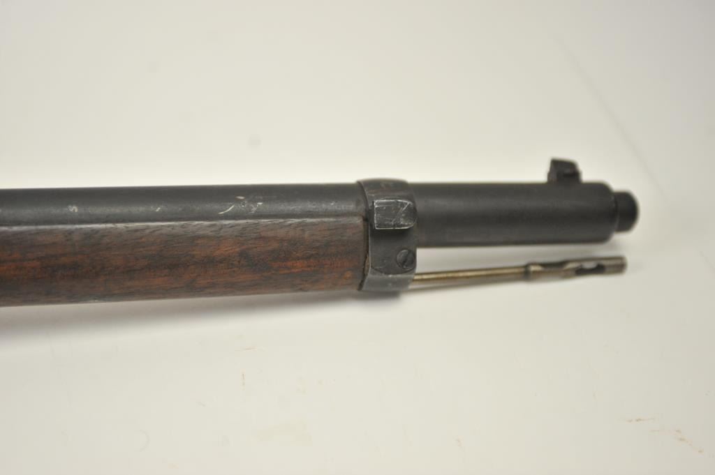 German Gewehr 88 bolt action rifle, 8mm caliber, Serial #5869. The rifle is in good overall condition with a 30” barrel with a blade front and a ladder style rear sights. The rifle has gone to a dark brown patinawith numerous proofs and acceptance marks and the front ring marked, “Danzig” and dated 1890. The smooth wood stock is in good condition with small mars and compressions and several faint cartouches. The stock hassling swivels, ramrod and a smooth steel butt plate. The GEW 88 was commonly referred to as the Model 1888 commission rifle and was a late 19th-century German bolt action rifle, adopted in 1888. Est.: $200-$400.(Antique).