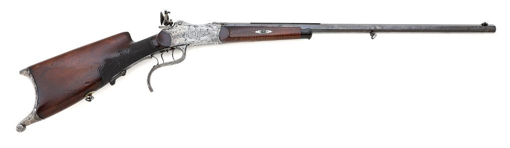 8.15x46R, 30'' octagon barrel with a mostly bright very good bore showing some scattered light pitting and oxidation with otherwise strong rifling throughout. The barrel is a relatively even mix of original blue and gray-brown patina showing some scattered areas of old oxidation staining and light handling marks. The rear of the top flat is grooved, the barrel shank shows a nice light foliate border and silver band inlays and the retailer marking is neatly marked ''J. HEINICKE, JENA.'' The action shows generous silvery case-hardened patina with some overall light oxidation and a few small areas of pinprick pitting, the breechblock with some wisps of good colors. The action is embellished with light bordering and wide Germanic foliate motifs that remain mostly crisp. The checkered walnut buttstock and smooth forend with horn schnabel tip remain in about very good plus condition showing some scattered light dings, a few thin sliver and flakes along some of the edges and a 7/8'' chip along the top right edge of the horn tip. The checkering remains mostly strong showing a light foliate border and there is a nice rounded cheekpiece along the left side of the buttstock. The rifle is sighted with fully-adjustable tang sight with medium aperture disc and the front sight base is present though the sight insert proper has been lost to the years. The action with double set triggers seems to function well mechanically. (13B11108-39) {C&R} [Tom Devers Collection] (1000/1500)