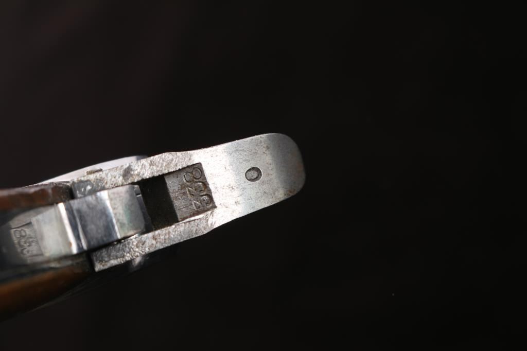 FAIR: Some major parts replaced; minor replacement parts may be required; metal rusted, may be lightly pitted all over, vigorously cleaned or re-blued; rounded edges of metal and wood; principal lettering, numerals and design on metal partly obliterated; wood scratched, bruised, cracked or repaired where broken; in fair working order or can be easily repaired and placed in working order.