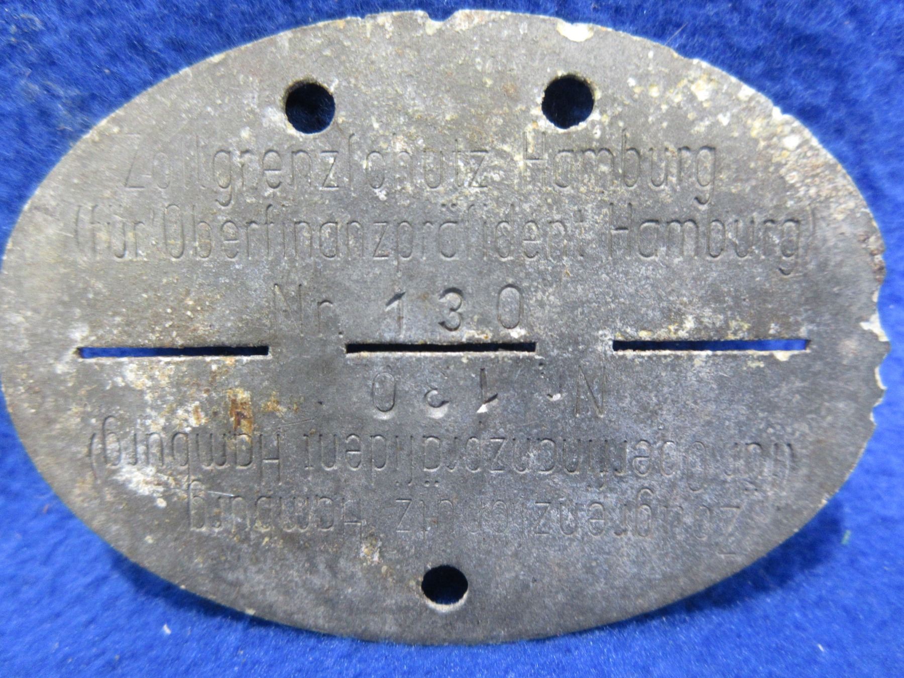 German WWII ID Tag/Dog Tag No. 130 of a Serviceman in the Border and Higher Financial Service of Hamburg