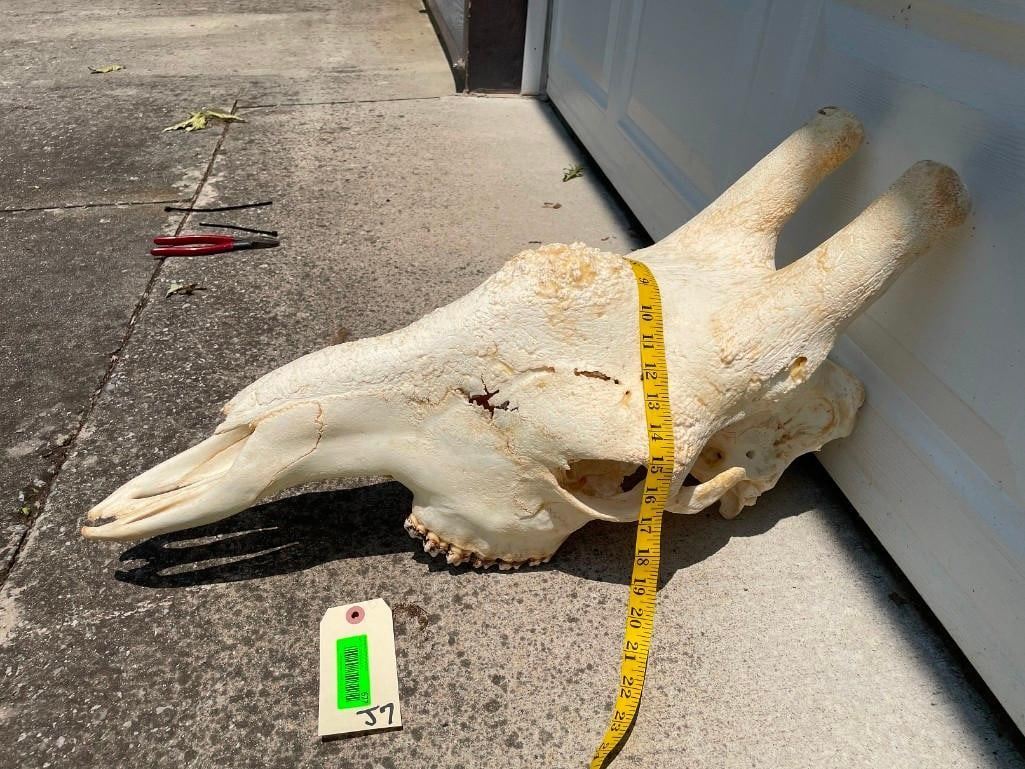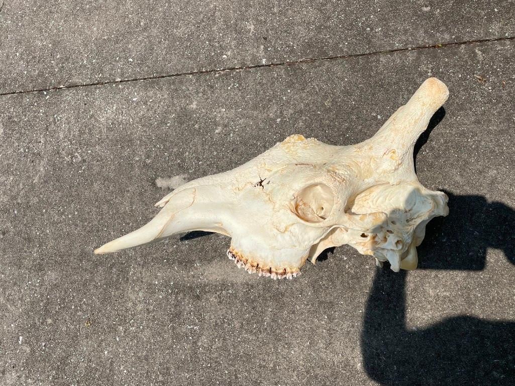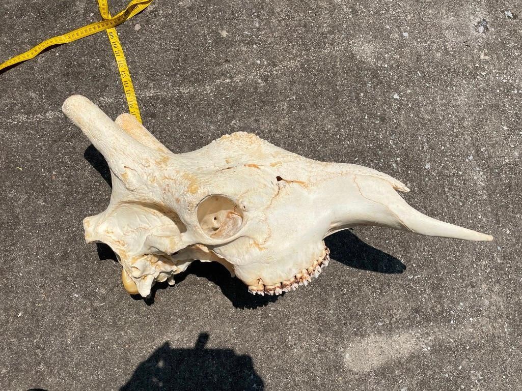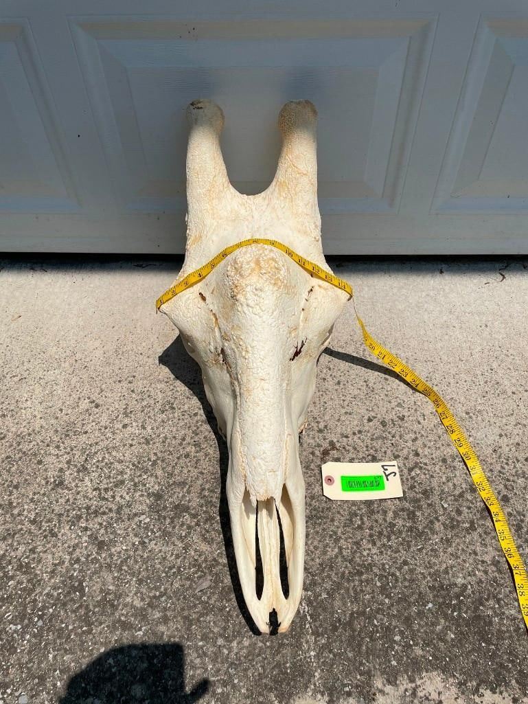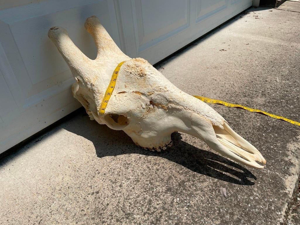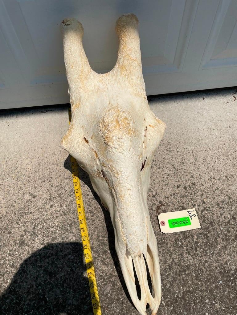 This Giant GIRAFFE Skull is in Excellent Condition. It has All its Teeth and Big Top Knots. It measures 29" Long x 12" Wide. Great African Safari decor. TAXIDERMY