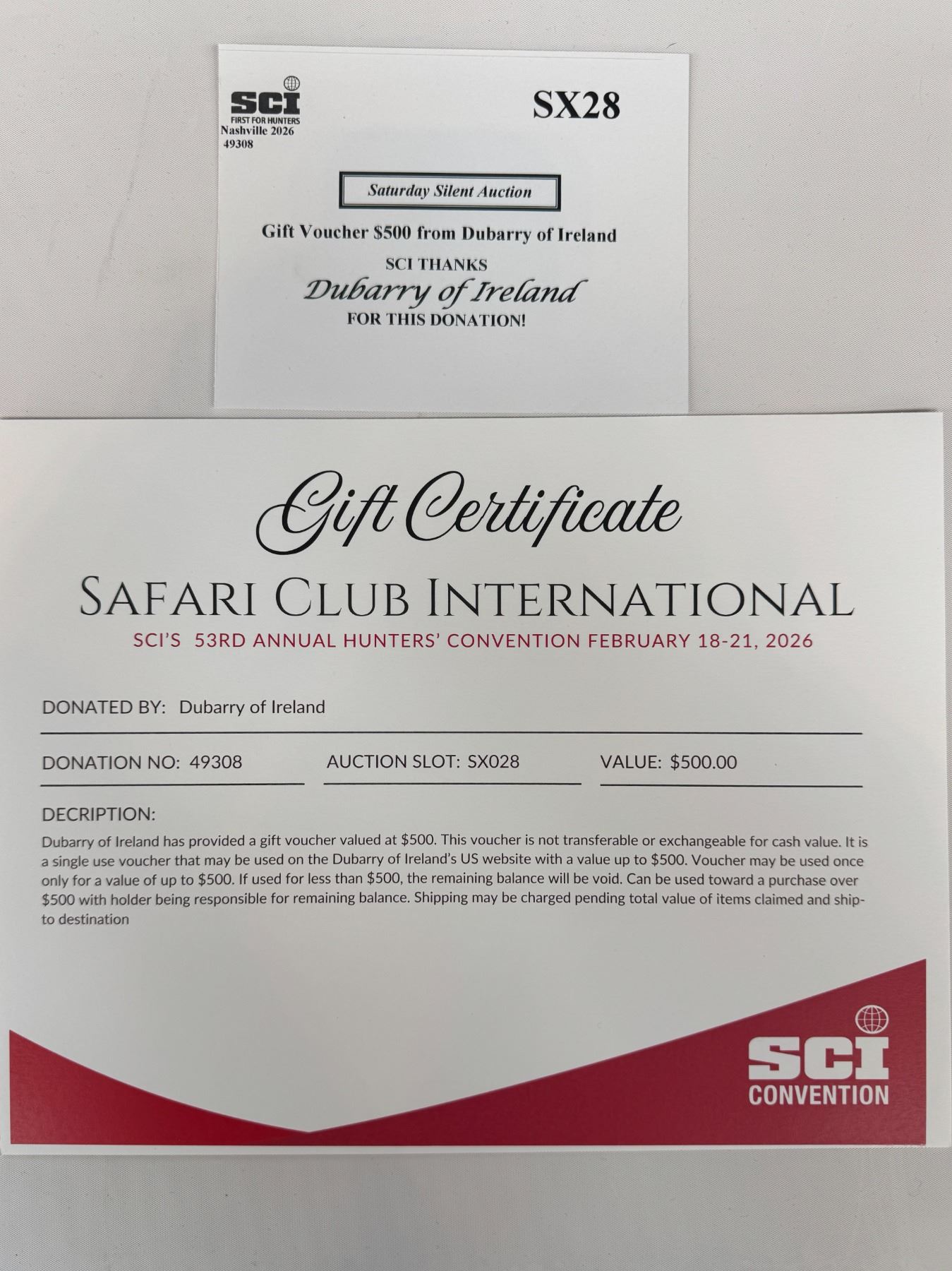 SCI is a Section 501(c)(4), non-profit membership organization. Our members are conservationists who hunt. Our mission is conservation of wildlife, education of the public, and advocacy for hunting and hunter's rights. SCI appreciates the support of its donors and members in helping to further its programs and goals. Auction revenue funds a great portion of SCI's operating budget. The majority of the dollars raised goes to support SCI's conservation and education programs and for protection of the hunter. The term “auction” refers to silent auction, live auction and raffle.