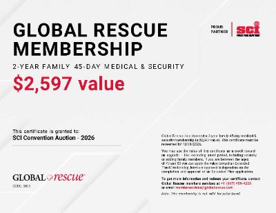 Global Rescue has donated a two-year Global Rescue Family Membership, providing field rescue, evacuation, and advisory services with no mileage restrictions.
