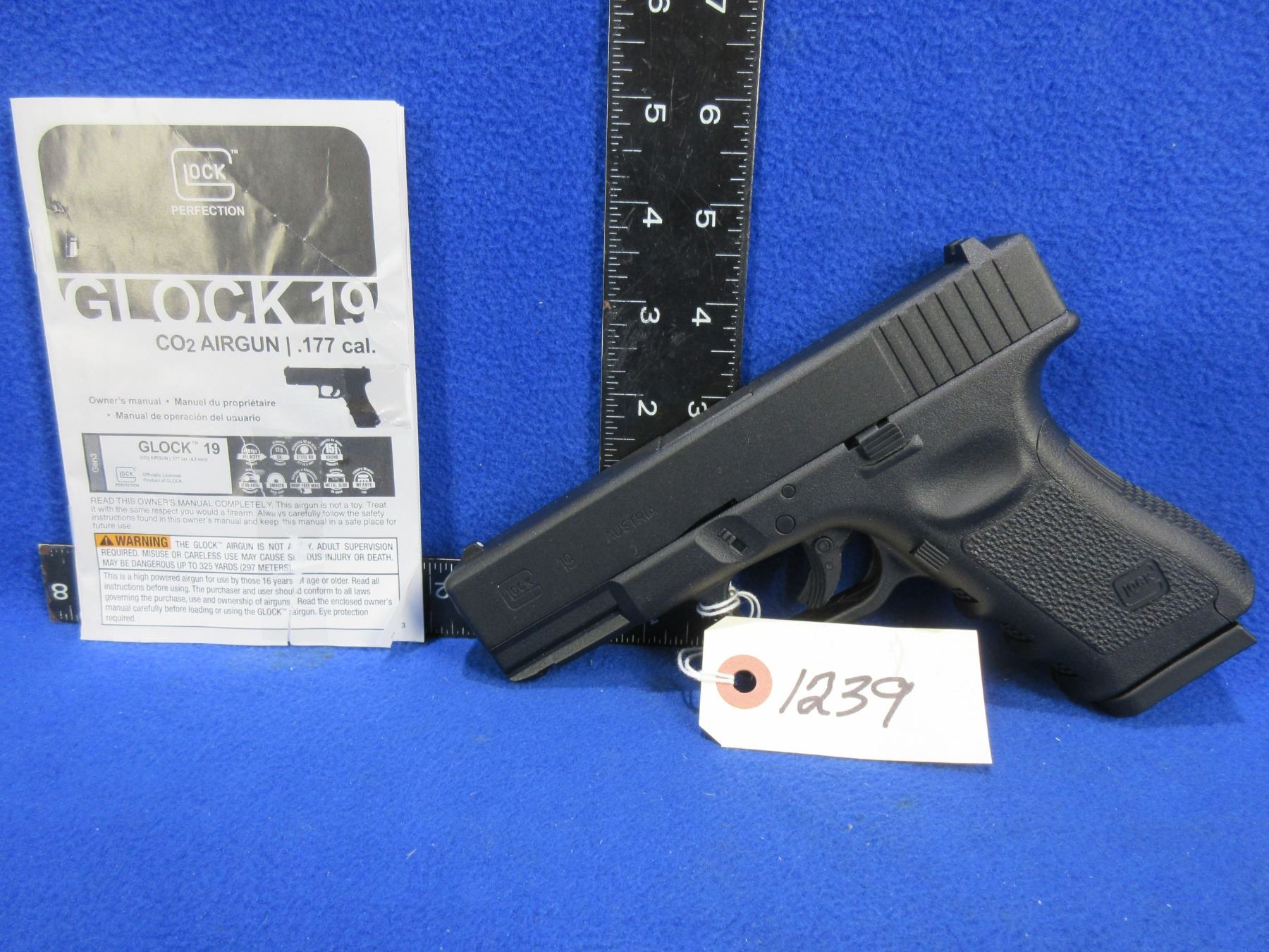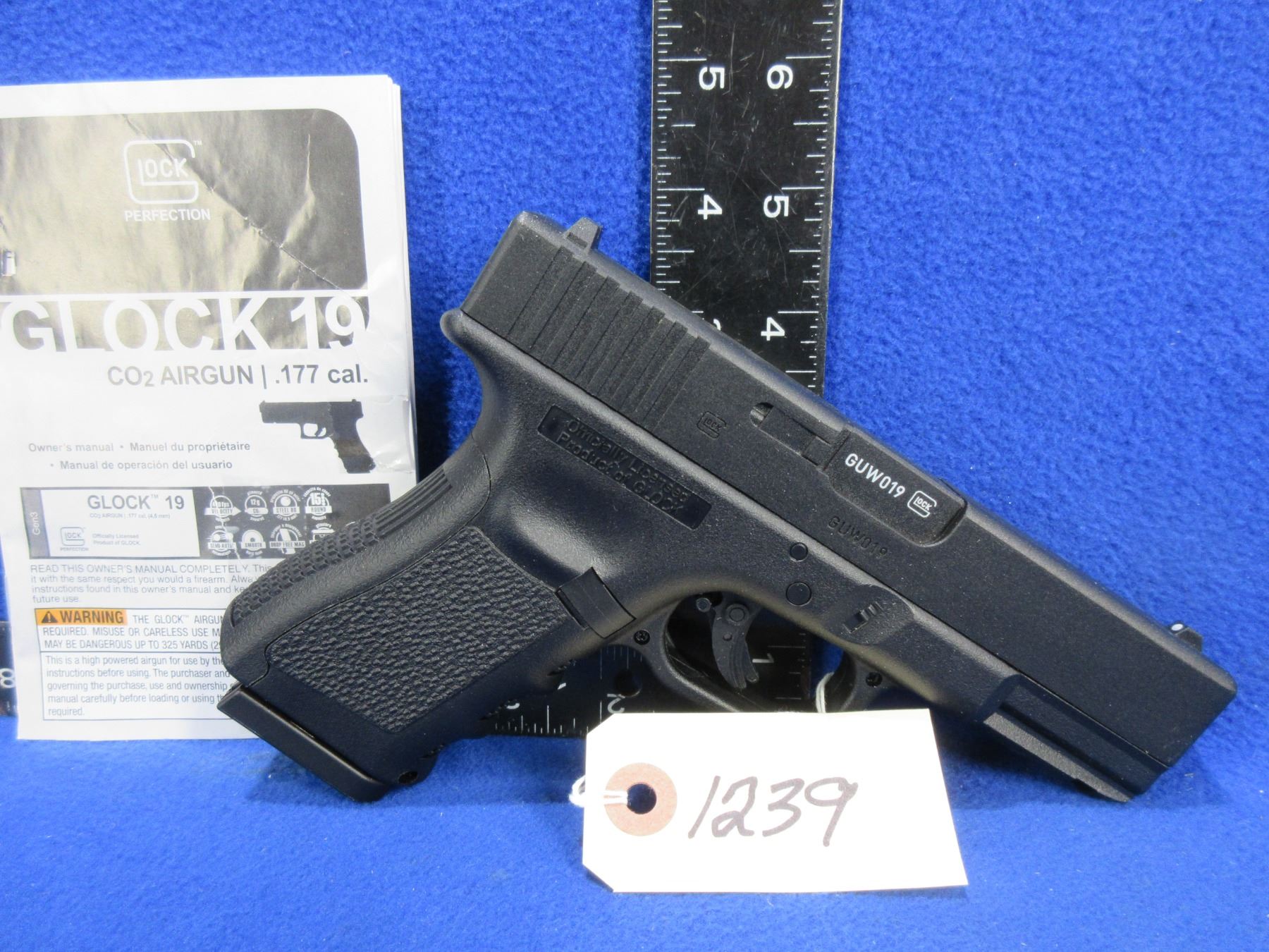 Glock 19 Semi-Auto CO2 Airgun - .177 Caliber, 410 fps, 15 Round Capacity Drop Free Magazine - Comes with Owner's Manual
