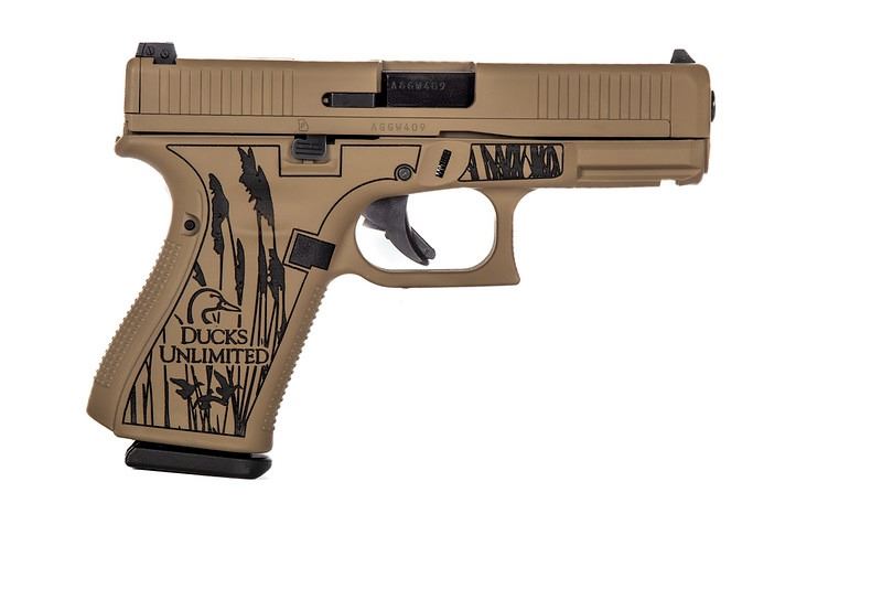 Semi-automatic .22LR pistol. 4.02” barrel. 10 round magazine. Green Cerakote, Kodiak Koating. Custom grips with DU logo and habitat scene. Gun lock included