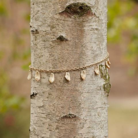 A collar length necklace on a handmade chunky link yellow gold chain with splayed diamond scattered tusks.