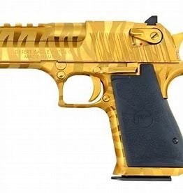 This Desert Eagle Titanium Gold pistol features an authentic Bengal Tiger Stripe Pattern.