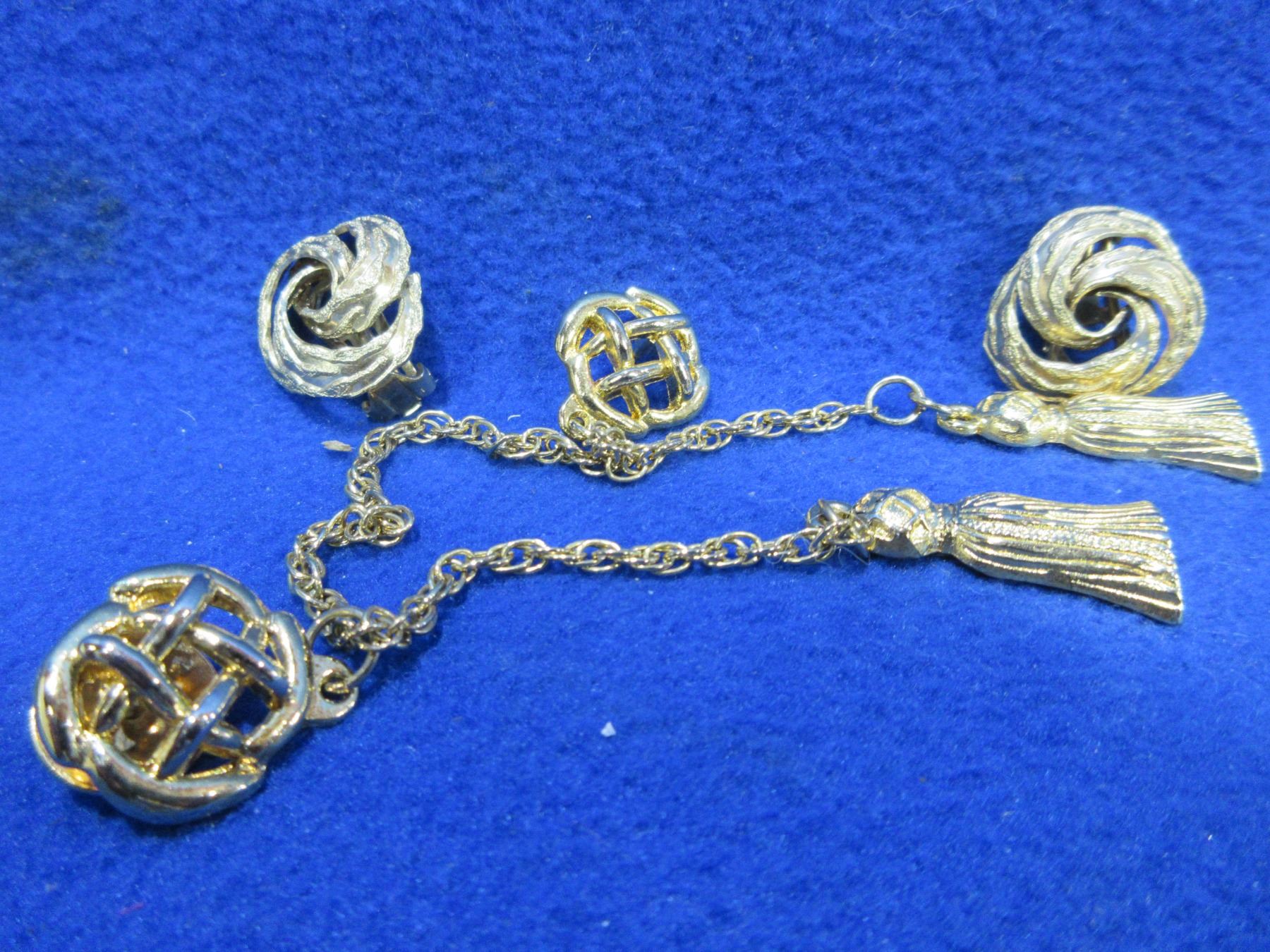 Gold Tone Sweater Pin and Clip-on Earrings
