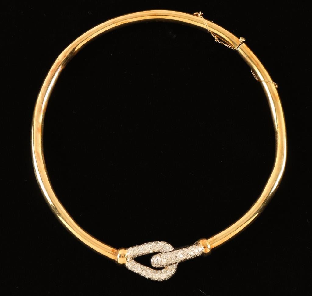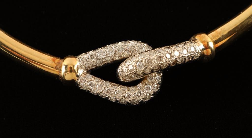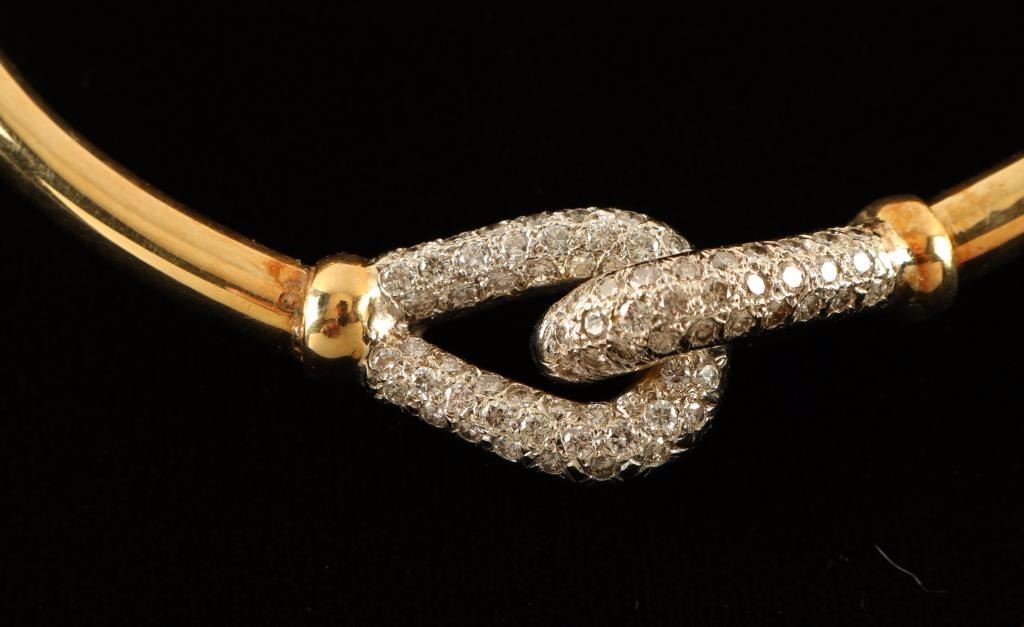 Bow tie design with pave diamonds set in 18KT yellow gold setting. Includes appraisal from House of Kahn 1980 stating appraised value at $6500.00