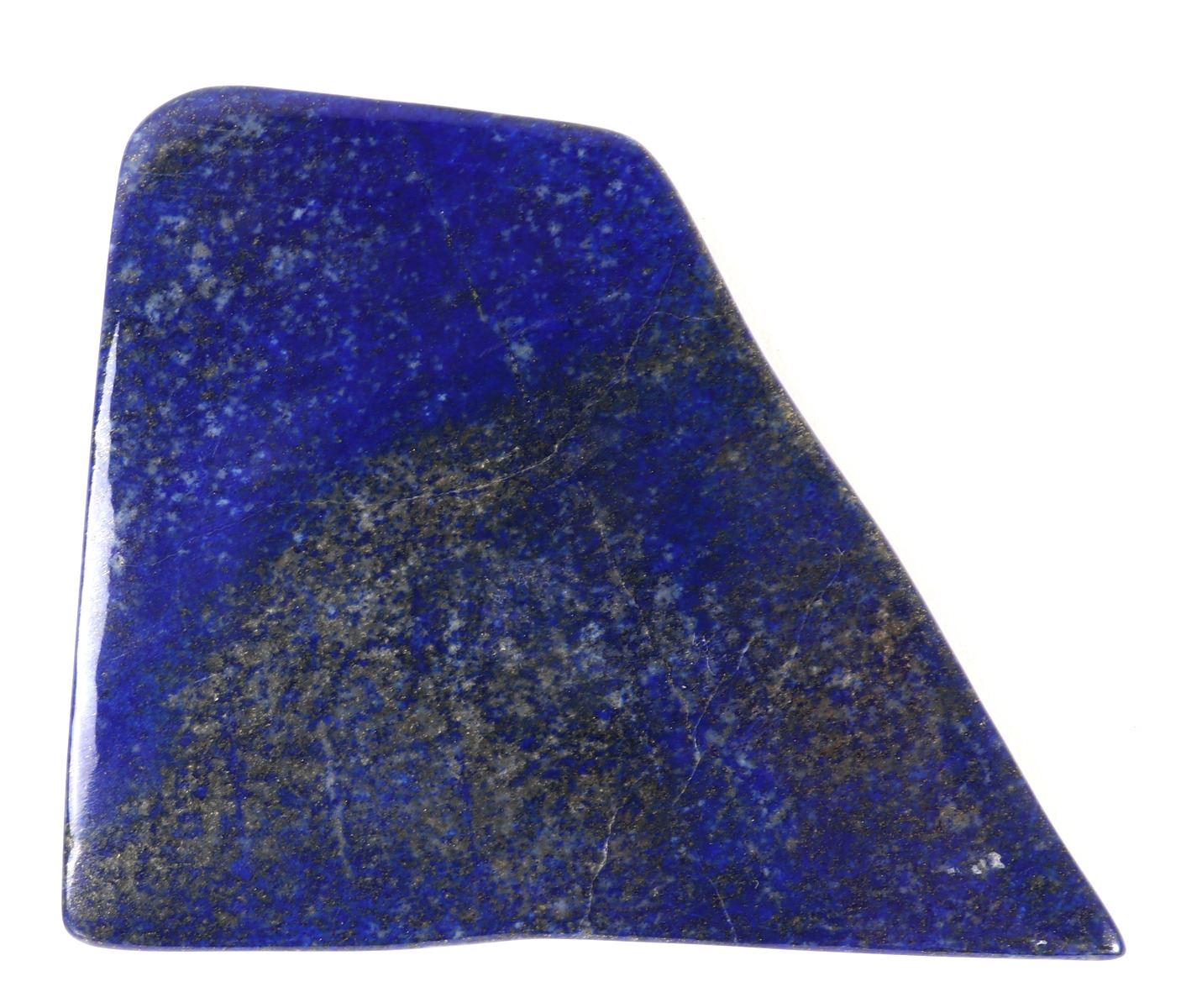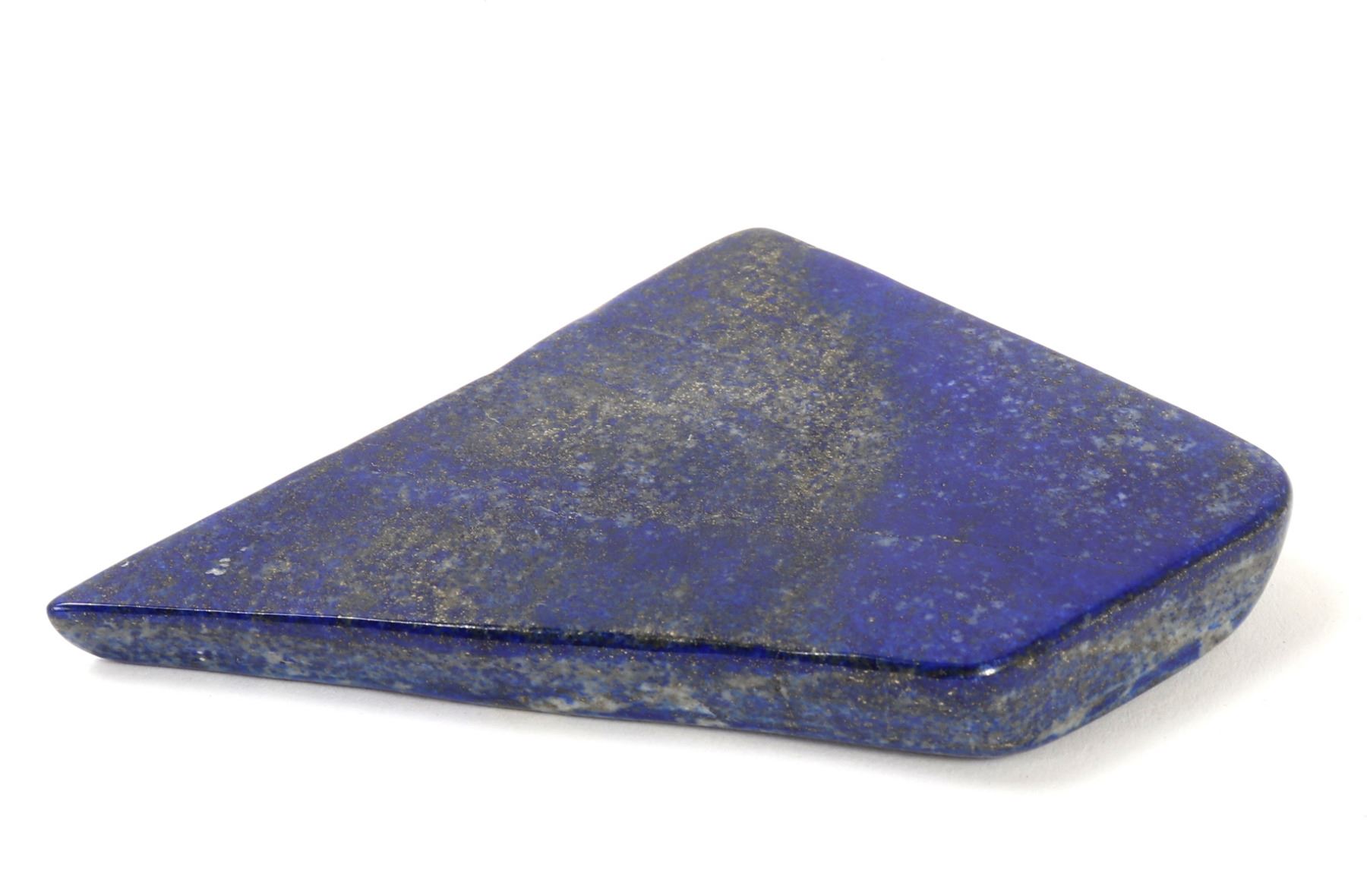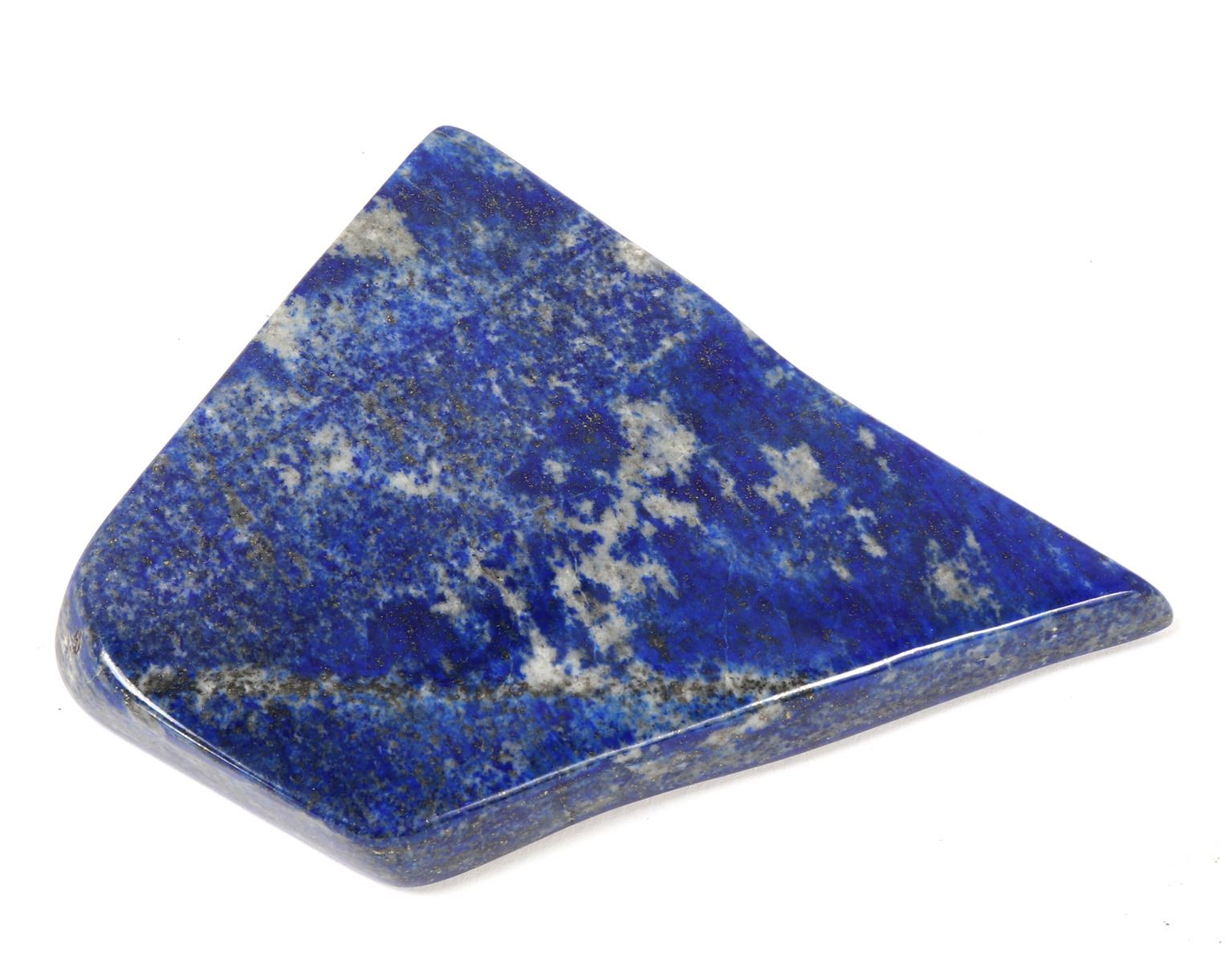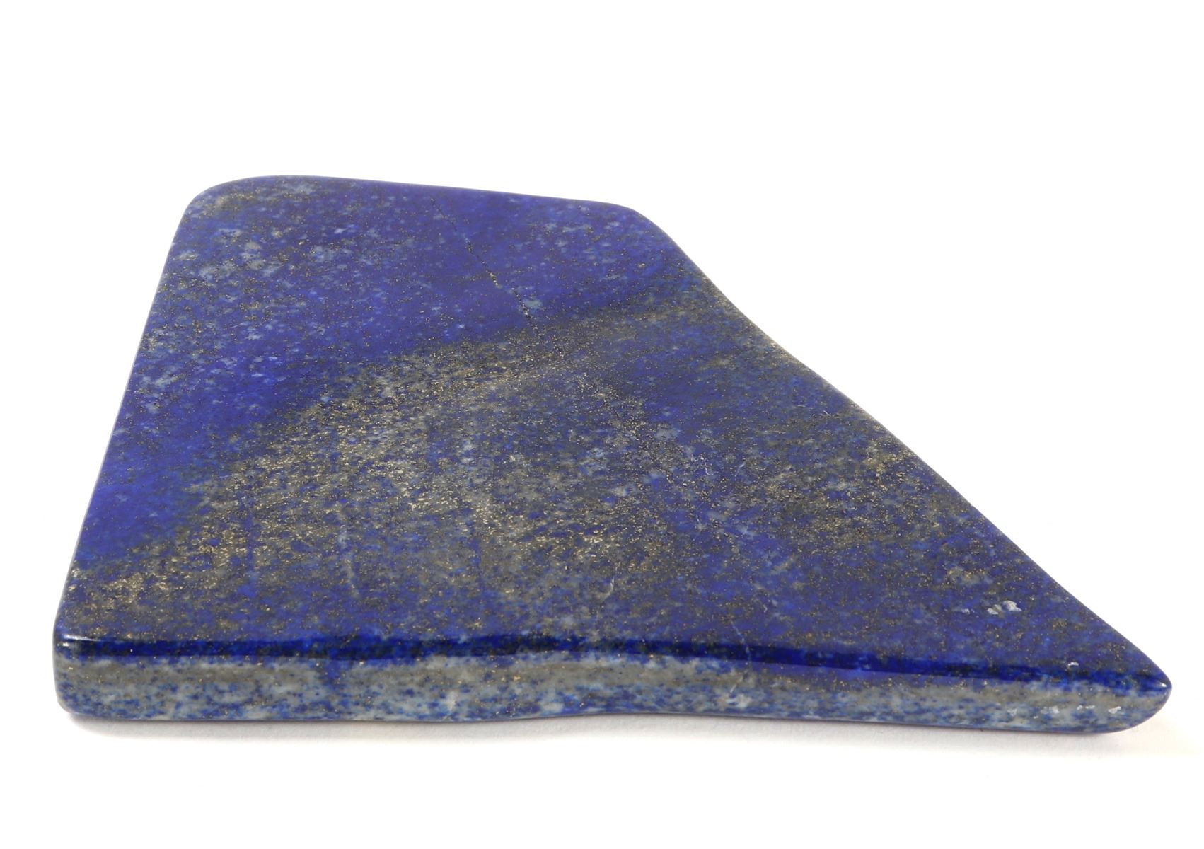 Stunning dark blue lapis lazuli mineral section with wonderful natural silver specks throughout the veins of the stone with a butter soft surface throughout. Wonderful book end or entryway piece! Size 4 3/8" L, weight 285 g. Condition: Well preserved overall condition.