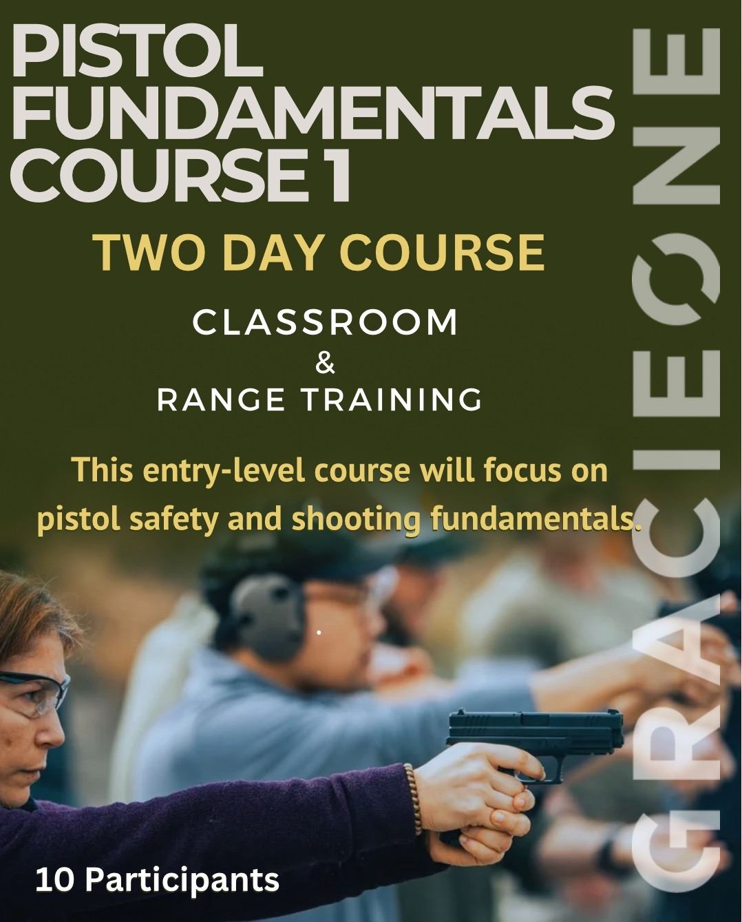 Two day course consists of classroom & range training. This entry level course will focus on pistol safety and shooting fundamentals.