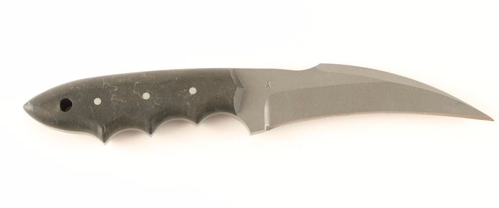 Black composite handle with a coated stainless steel blade. Measures 8 7/8" overall with a 4 3/4" blade. Good condition.