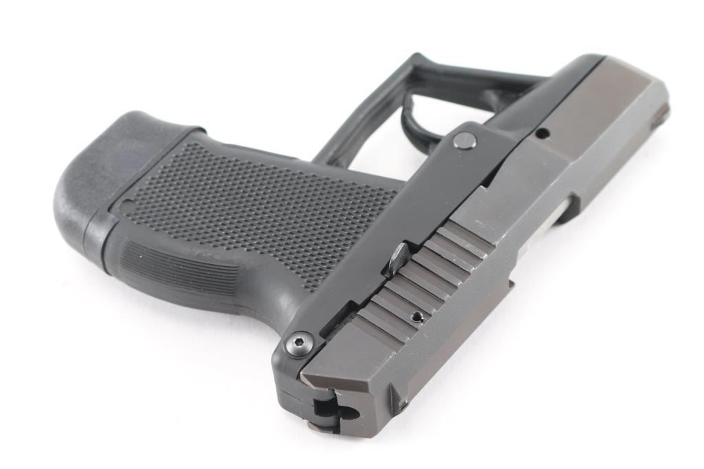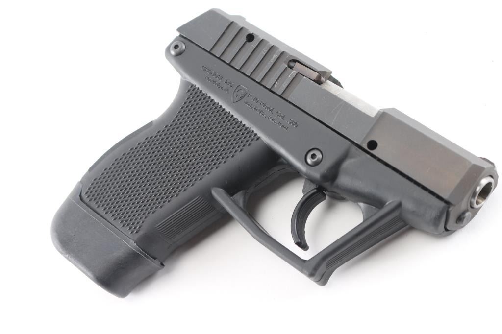 American made compact double action semi auto hammerless pistol with 3" barrel. Matte black slide, polymer frame with checkered grips and fixed sights. serrated straps, internal magazine that is loaded using standard M-16 stripper clips. Excellent bore, like new condition, Includes original factory box with soft case, paperwork/manual and 5 stripper clips and speed loader.NRA Condition-Excellent. Modern Firearm.