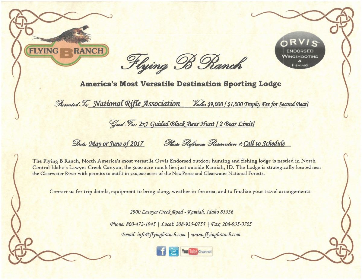 Congratulation on your winning bid(s)! Proceeds benefit the National Rifle Association of America. Contributions to the NRA are not tax deductible.