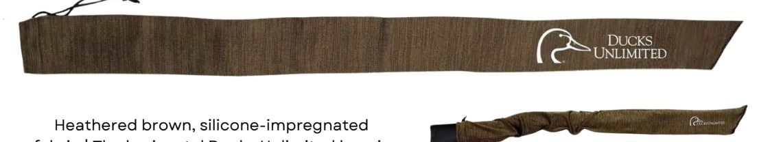 Heathered brown, silicone-impregnated fabric. The horizontal Ducks Unlimited logo is printed in white. Measures 50" x 4.5"