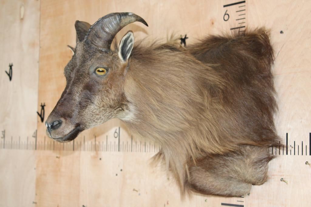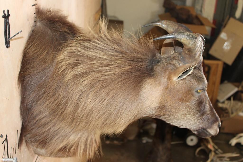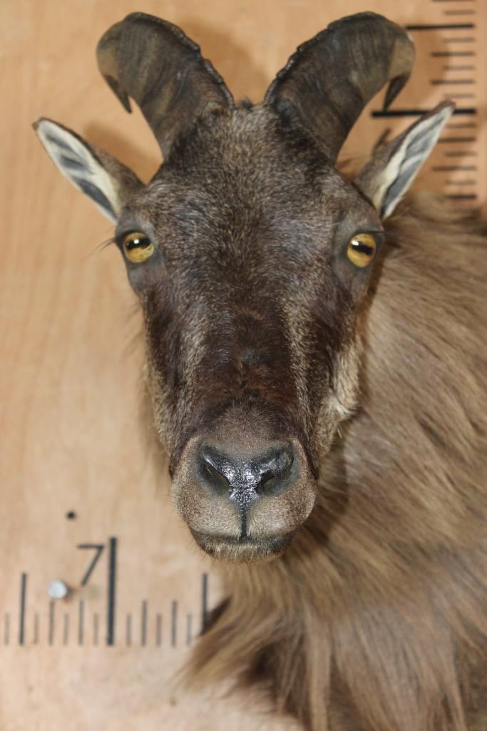 Very Nice, Clean, and Newer HIMALAYAN TAHR Wall Pedestal. The Left Horn measures 10" Long and the Right Horn measures 10 1/8" Long. It is in Very Good Condition. The Himalayan tahr is a majestic mountain goat native to southern Tibet, northern India, western Bhutan and Nepal. TAXIDERMY