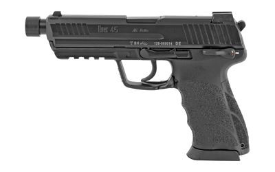 Originally developed as part of the U.S. military's Joint Combat Pistol program in 2005-6, the HK45 Tactical model is the threaded barrel variant of the HK45 and comes standard with a threaded barrel and adjustable Trego high profile sights that are suitable for use with or without suppressors.