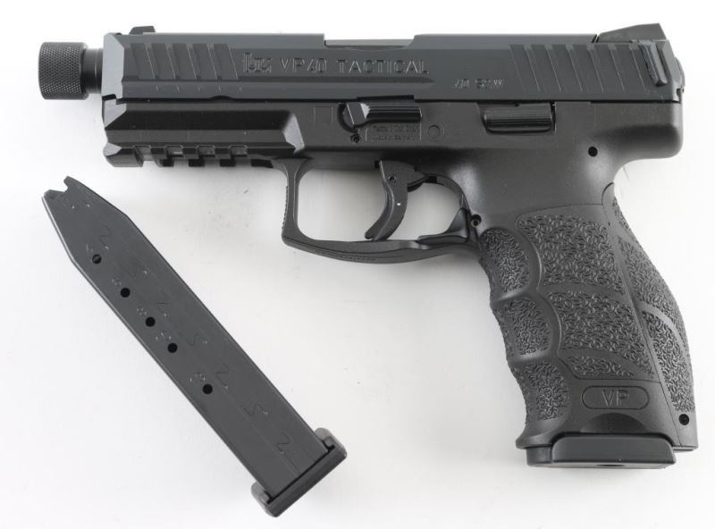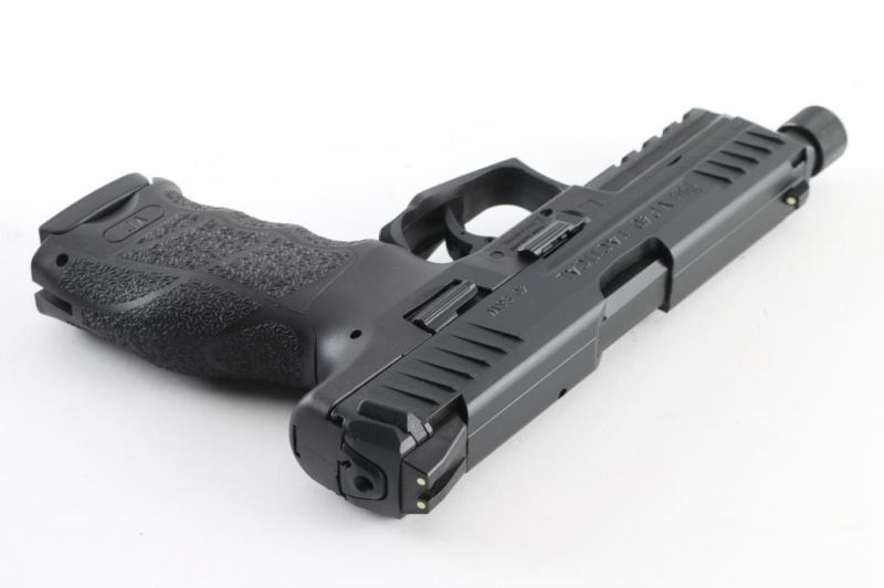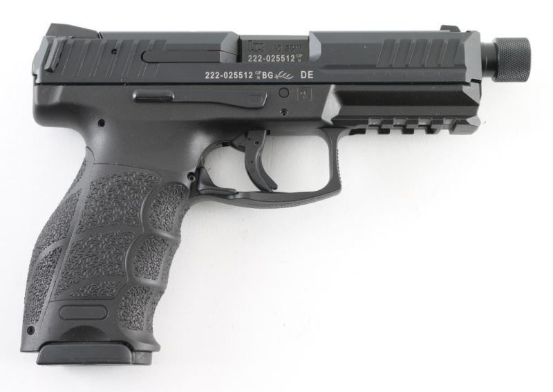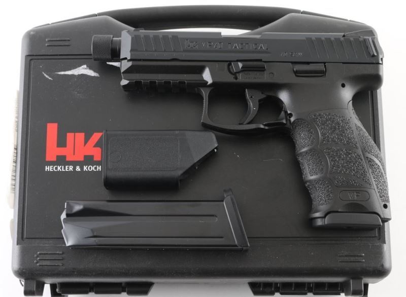 Made in Germany, this is a striker fired, semi-auto pistol. The VP40 Tactical Model is identical to the standard VP40, with the addition of a premium grade threaded barrel. Only their weights and lengths differ due to the longer and slightly heavier threaded barrel. The threaded barrels are manufactured at HK’s Oberndorf factory in southwest Germany, using the legendary Heckler & Koch cold-hammer forging process. This gun also features a black polymer frame, ambidextrous magazine release and fixed 3 dot night sights. Comes with original factory hard case, owners manual, magazine loader, interchangeable backstraps and grip panels and (2) 13 round magazines. This gun is like new. Condition: NRA Near Perfect.