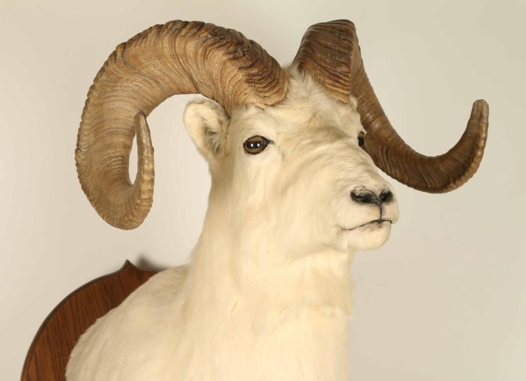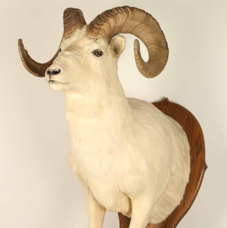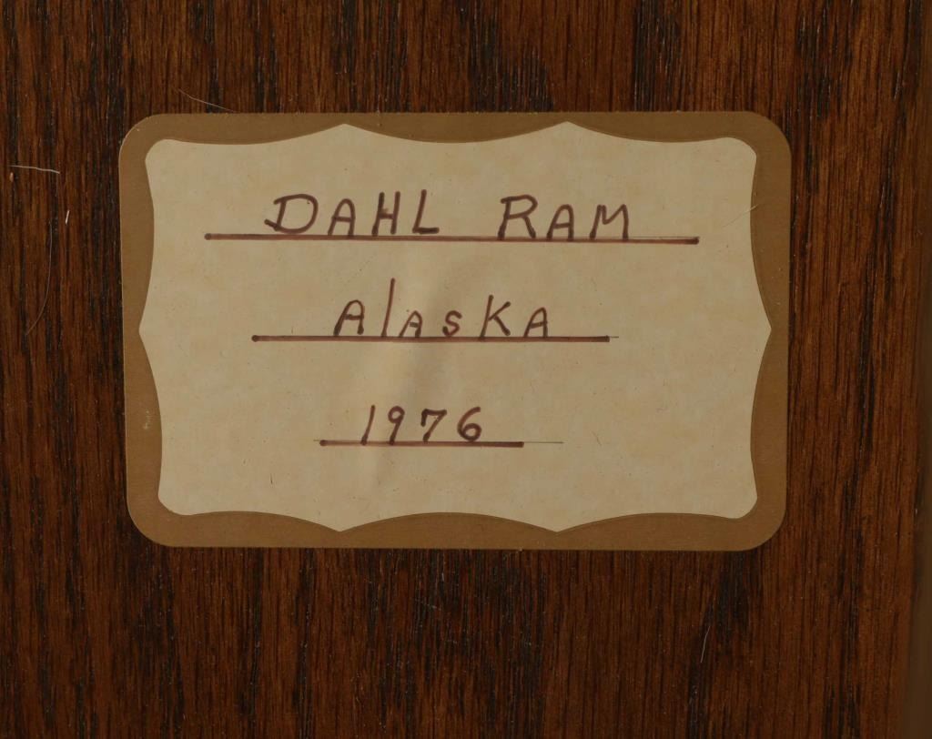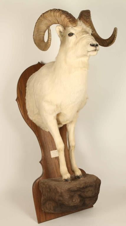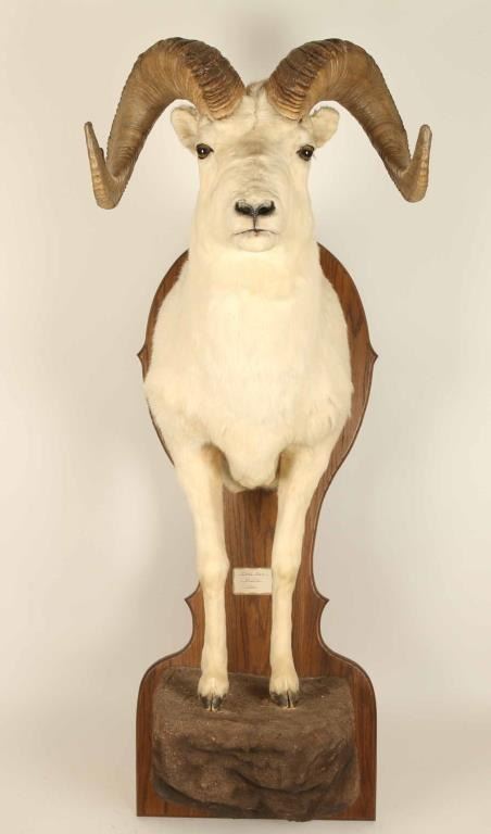 Mounted on faux rock base with oak board. Captured in Alaska 1976. Has a 21" spread, 61" long and 34" out from the wall. From the collection of Arizona collector Don Fortney.