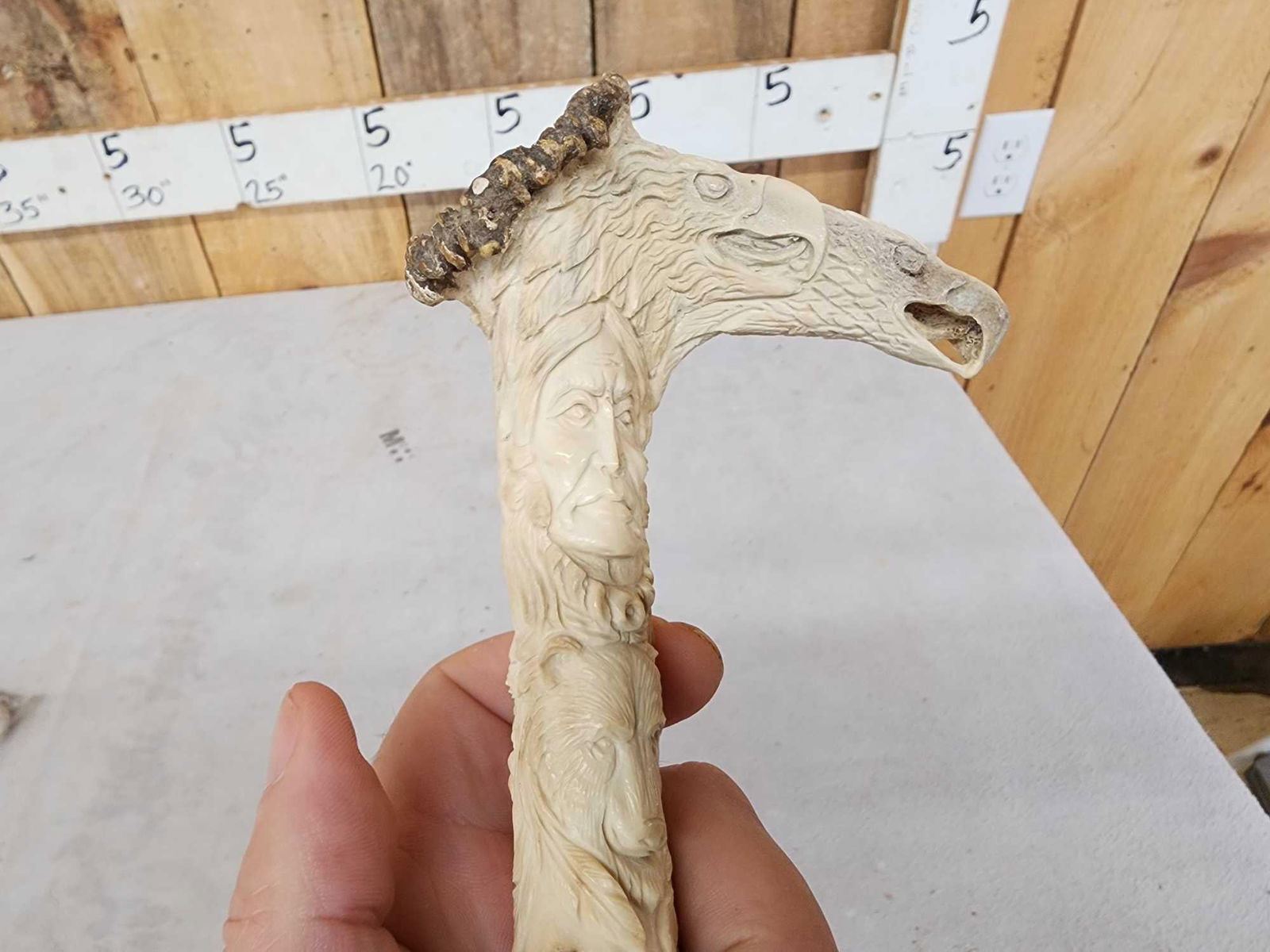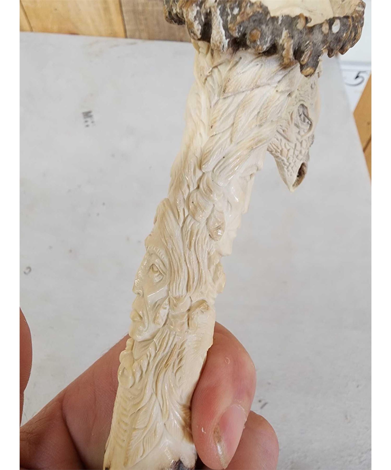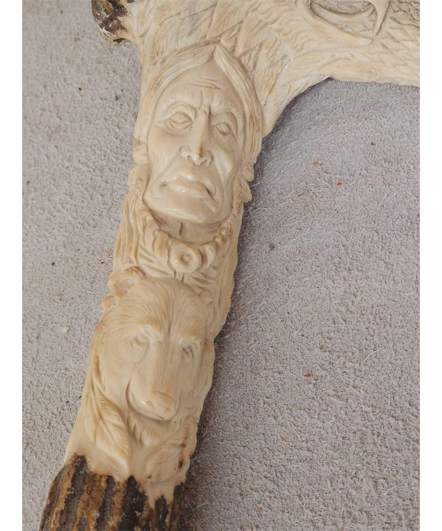 126.39 Awesome detail double sided carving featuring Native American Bust with eagles wolves bears great artwork