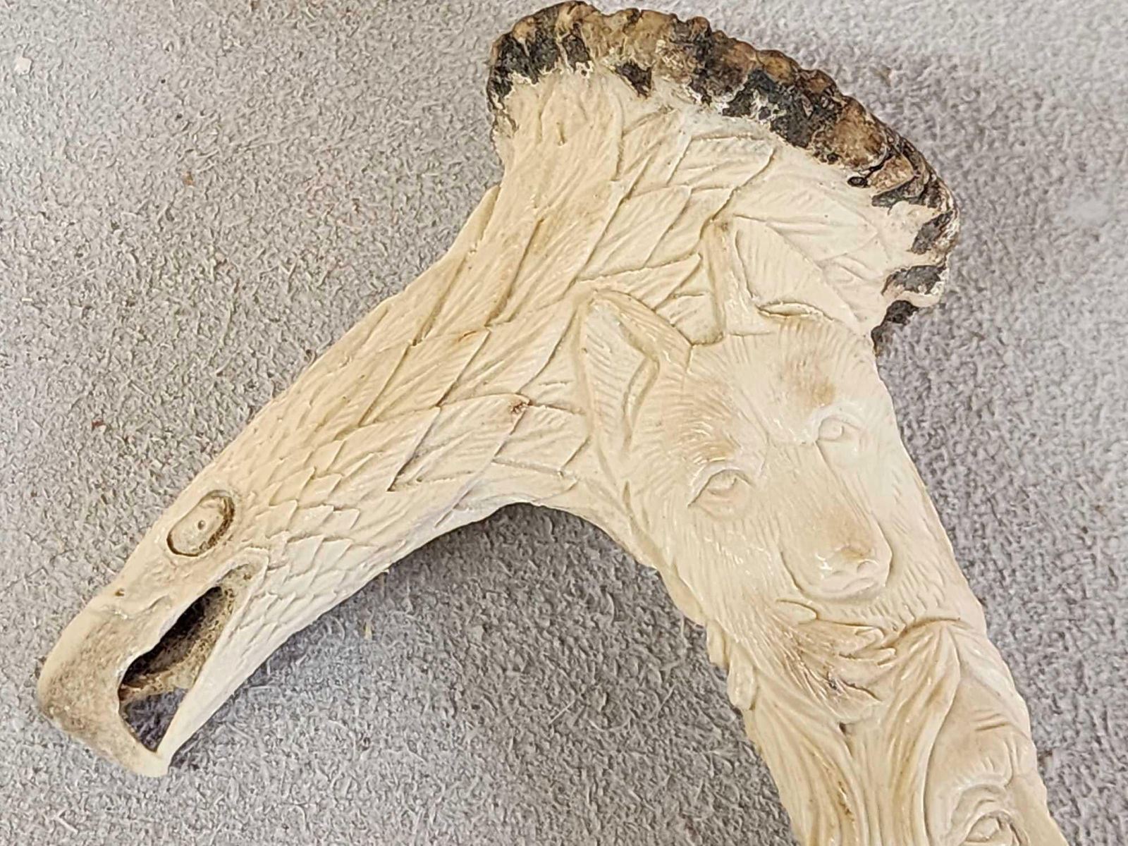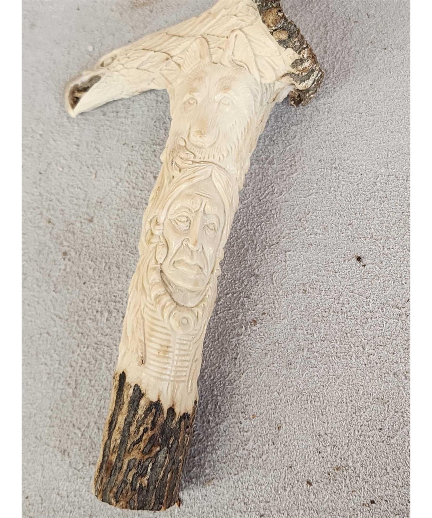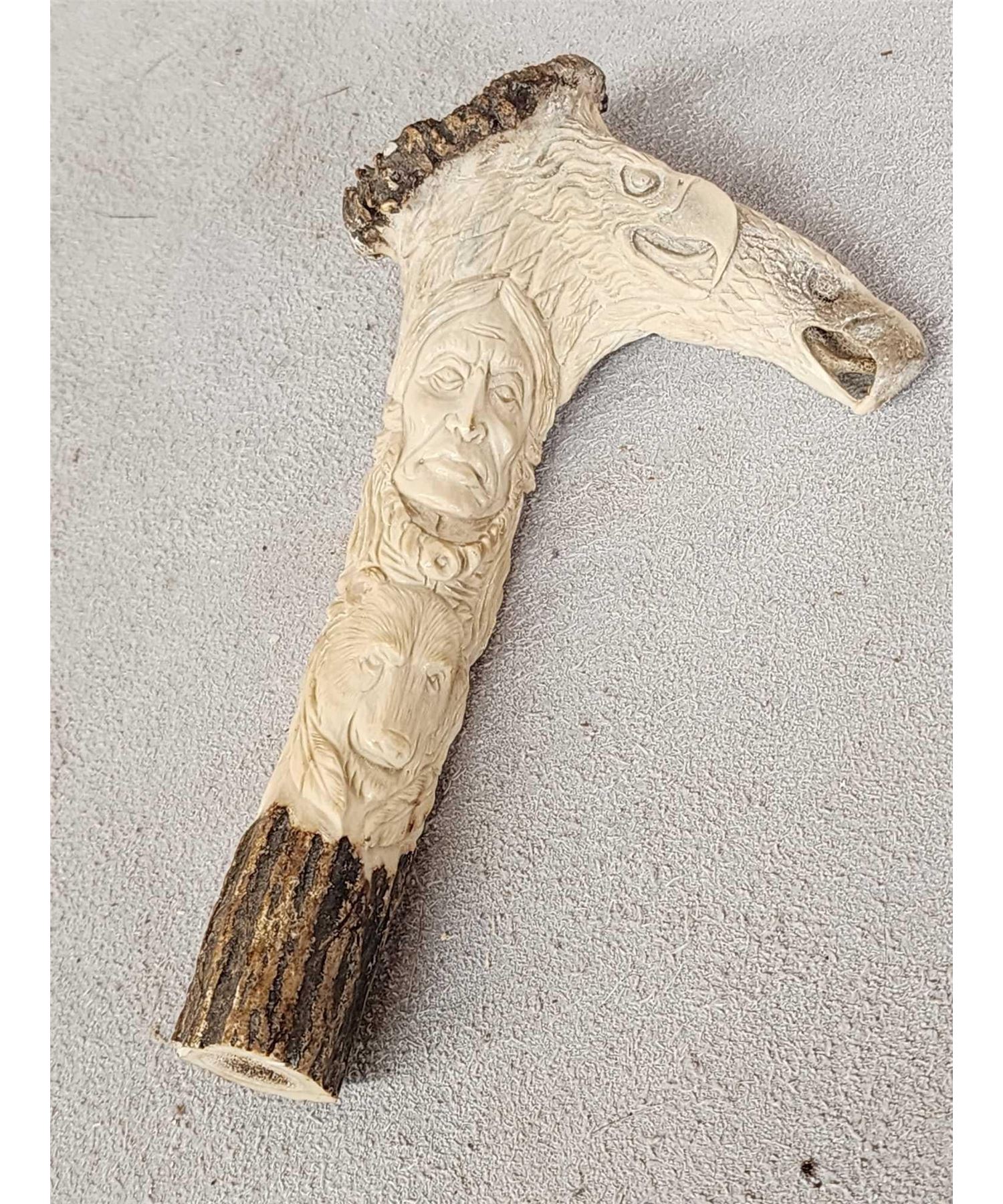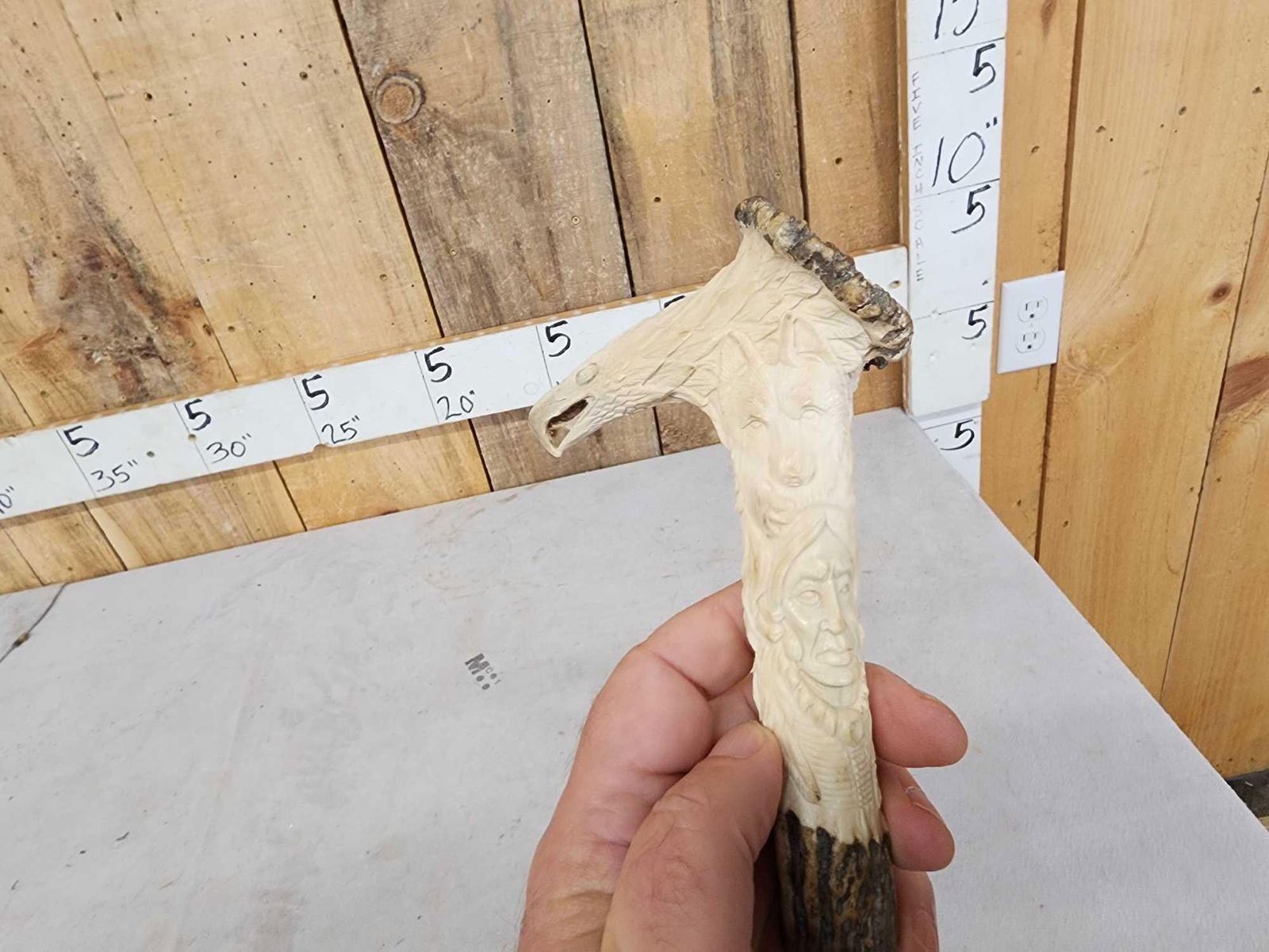 126.39 Awesome detail double sided carving featuring Native American Bust with eagles wolves bears great artwork
