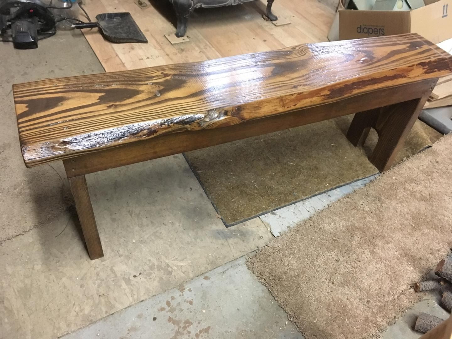 Beautiful hand crafted wood bench made by Robin Simmons. The bench is 7 foot long.