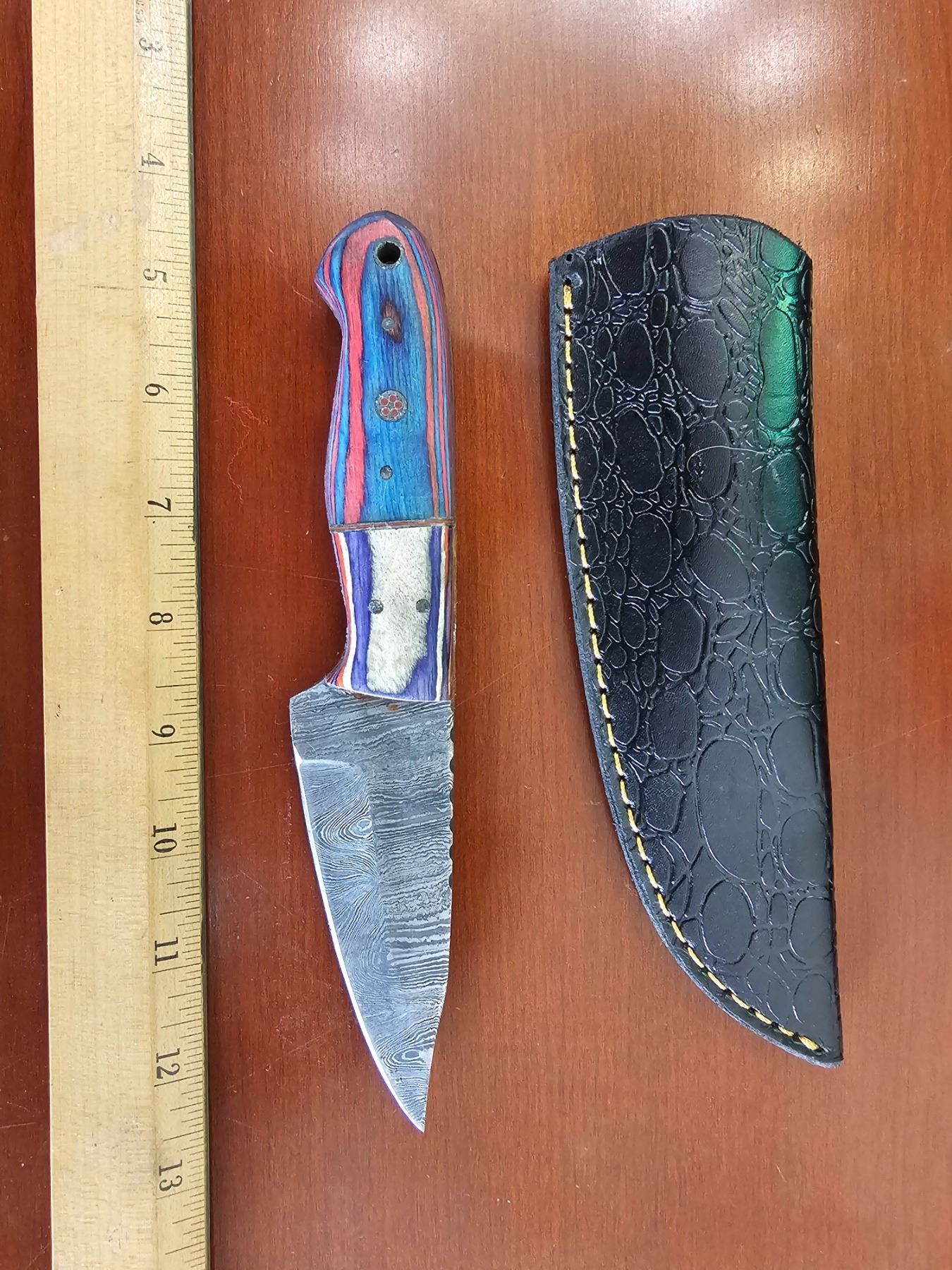 Hand Forged Damascus Steel Knife w/ Leather Sheath