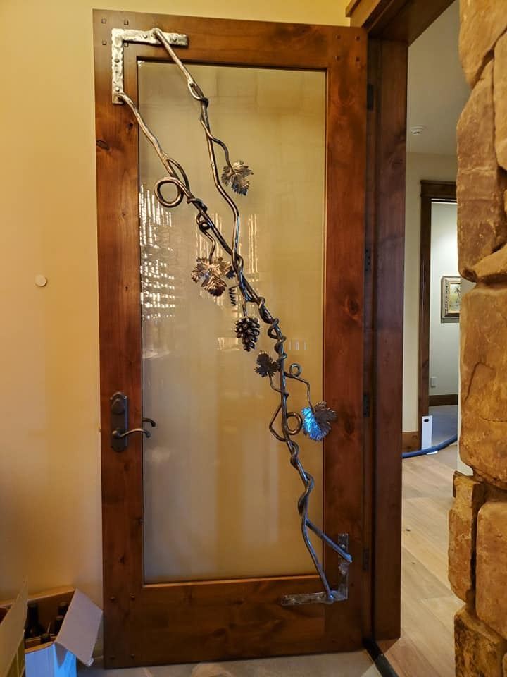 This free-form steel scroll cross is hand forged by Artist Frank Jackson in his Black Smith Studio in California.