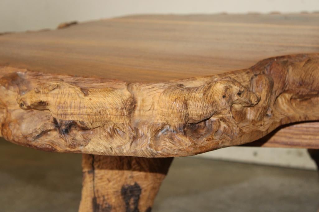 Beautiful Hand-carved Shape of AFRICA Coffee Table. It has 3 Carved Elephant Foot Legs. In Total it measures 51" Long x 38" Wide x 16.5" Tall. COLLECTIBLE AFRICAN ART FURNITURE AND TABLES