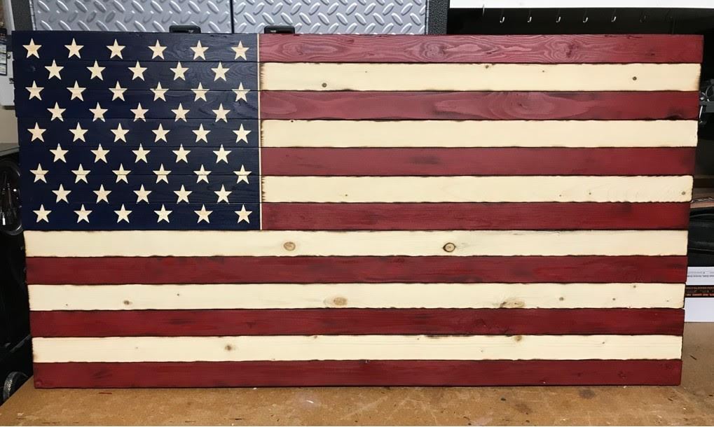 Paz Designs is proud to donate a beautiful 4 ft handcrafted American flag. These wooden flags are made are with white pine material. The pine is sanded to add beauty and smoothness. I then hand cut the Stars and then add a sealer to give it protection.