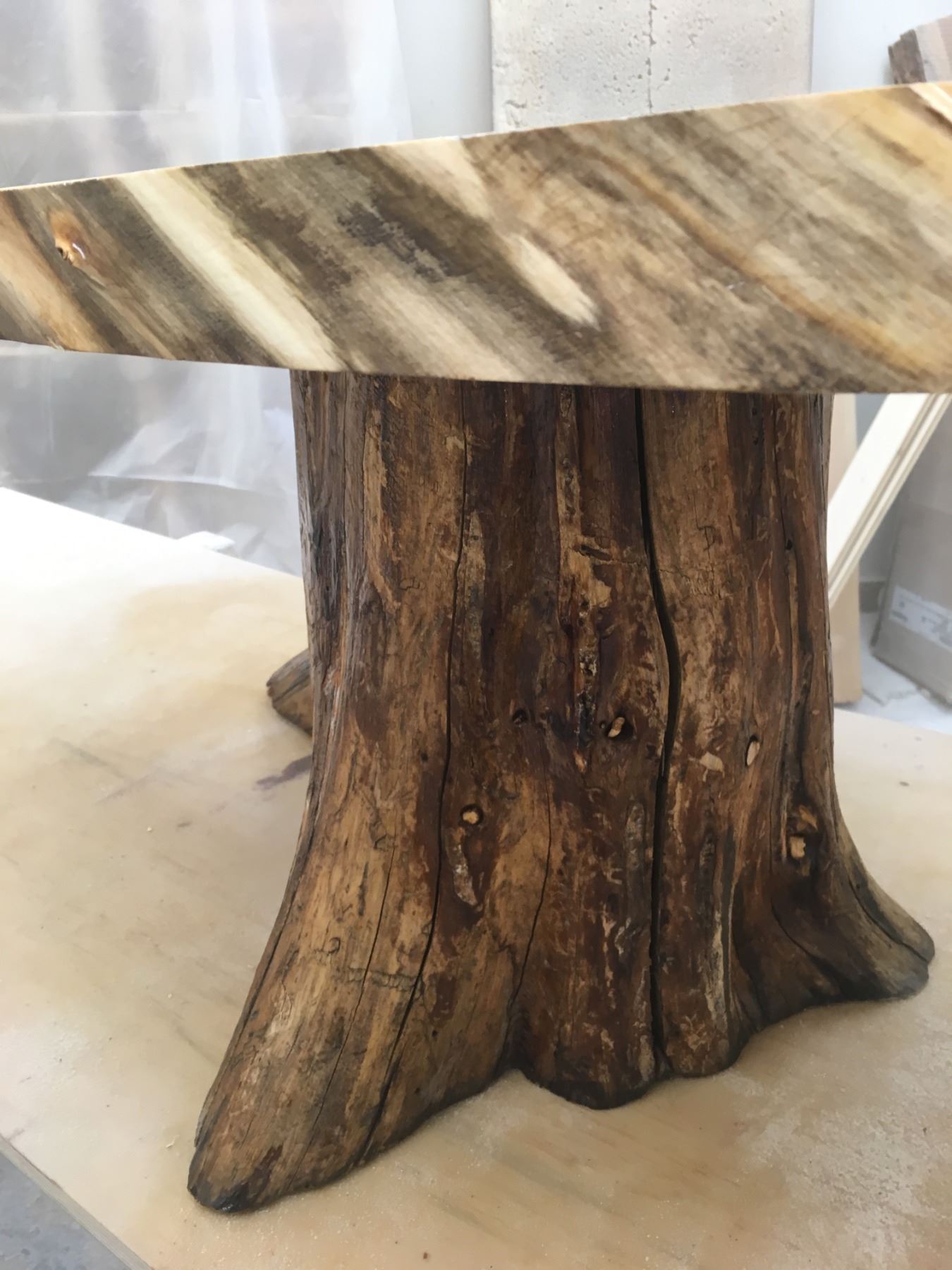 Dale and Jacque have built a one of a kind oval coffee table from a beautiful slab of poplar. The base is a pine burl stump that they found high up on the side of Carter Mountain near Cody, WY. "This Item is under construction and photo will be posted as soon as it is available!