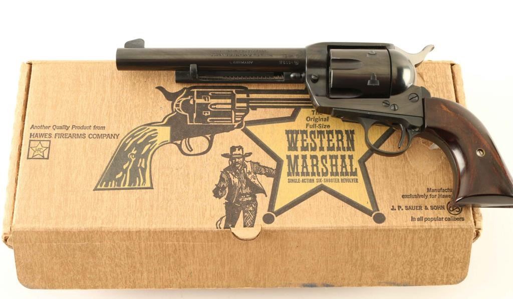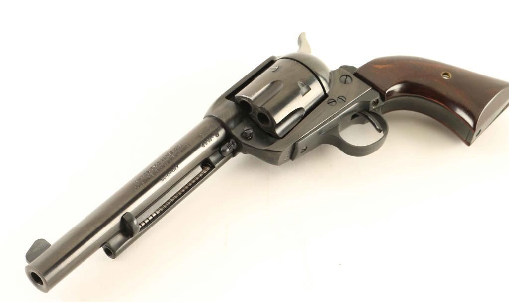 Revolver. 6-shot, Single-action. 98% blued finish, with smooth, lacquered wood grips. 6 1/2" barrel. bore appears excellent/bright, but a little dusty. Cylinder chambers are very good. Action is tight, and cylinder indexes properly. Comes in the original factory box. Overall a nice conditioned revolver. NRA Condition-Very Good. Modern Firearm.