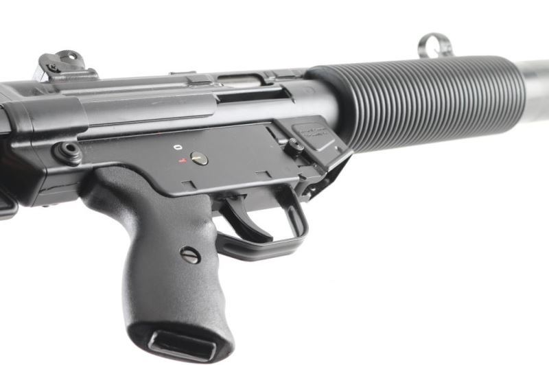 'MP5-SD Clone' Pre-Ban carbine. Made in West Germany. 16" barrel with hooded post front and rotating Diopter rear sights. Comes with faux "SD"version barrel shroud which slides off and on. Collapsible steel stock. Factory matte black metal finish. Contoured. textured pistol grip. Action is crisp/tight. Metal/furniture are very good with a few minor scratches. Bore is very good/bright, a little dirty. No magazine. NRA Condition-Near Excellent. Modern Firearm.