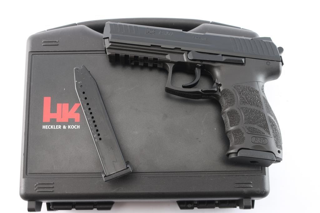 Double-action semi-automatic full-size 9mm pistol . Built around a longer slide for improved sight radius and control, this variant features a DA/SA trigger with a rear-mounted decocker, ergonomic grip design with interchangeable backstraps, ambidextrous controls, 3-dot luminescent sights, combat triggerguard, accessory rail. Pistol retains approximately 98% of its original finish showing minor edge wear and light contact wear on the barrel hood. Bore and polymer frame are excellent. Comes with factory hard case, two 15 round mags, manual and two additional grip panels and back straps.